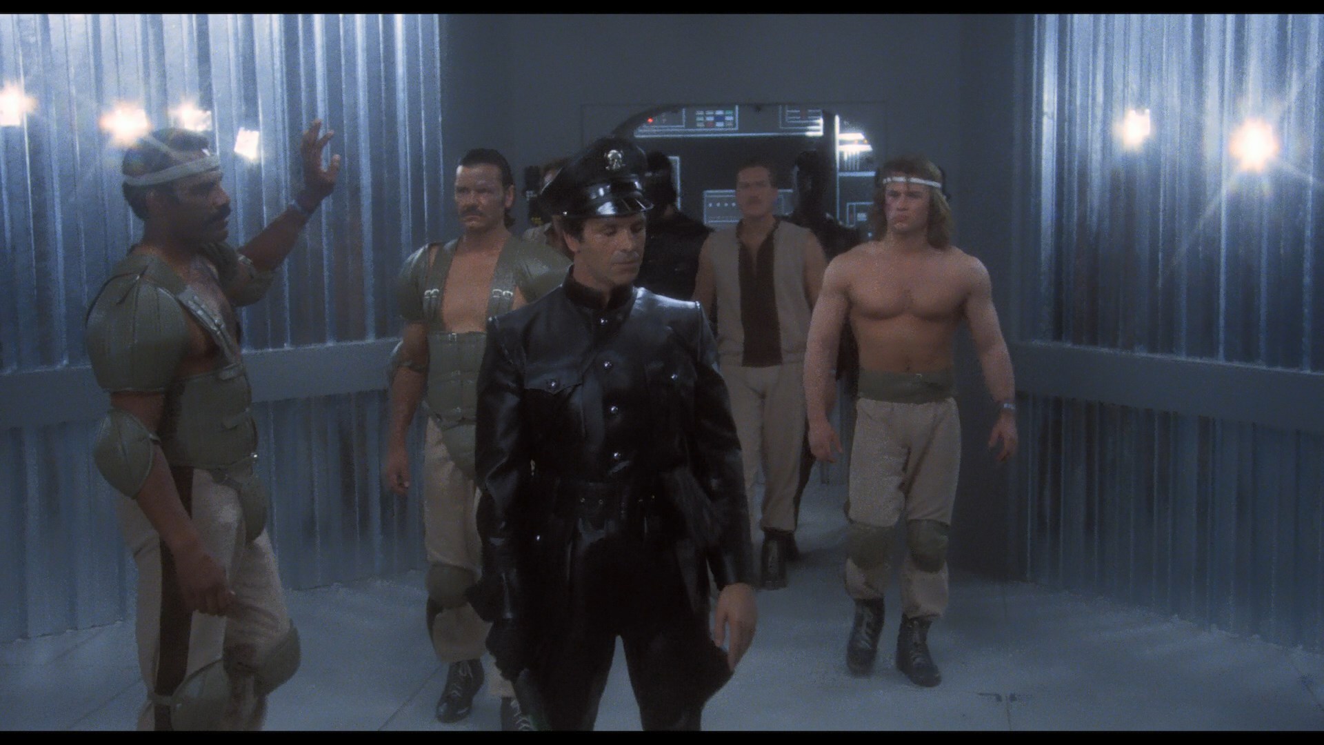 upgrade courtesy of a 4K scan of an interpositive. Needless to say, this release (under the title Warriors of the Year 2072) is a going to be a revelation for just about anyone since there was no way to see this in good quality before apart from a very scarce theatrical print from Europe. The dark scenes finally have depth and clarity, the golds really pop, and it all looks much more like the Fulci style we know and love. The film was shot in English (with looping for some of the secondary actors(, so that's the version you get here with a good DTS-HD MA English 2.0 track (with optional English SDH subtitles). This also represents the longer 94-minute European cut of the film, which has only been easily accessible before via the Italian-only DVD release and contains some extra plot and character bits involving Drake; you can read a full breakdown of the differences here. A commentary is also included with this writer and Troy Howarth, so that can't be evaluated here but hopefully it will prove to be enjoyable. (The film is also preceded with a warning about strobing lights, and they ain't kidding; Williamson's big intro can give you a migraine.)