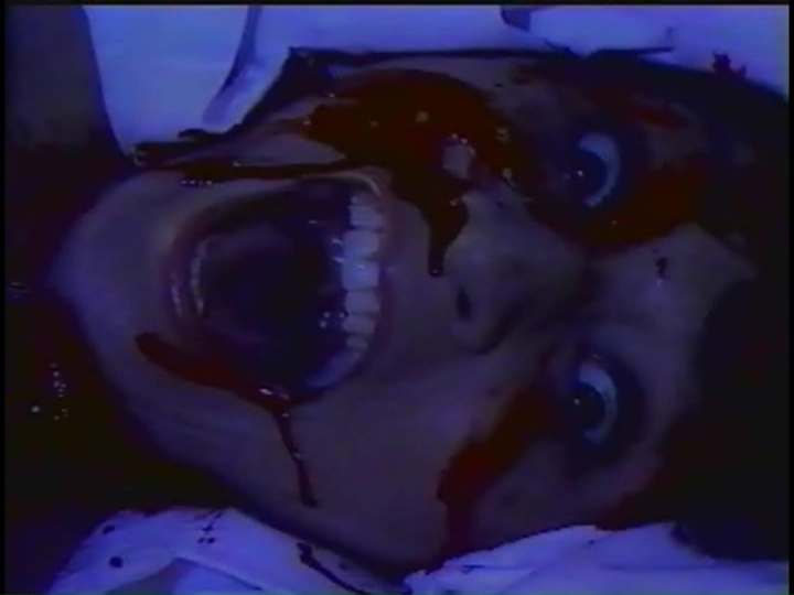 A gold mine of oddball pleasures for the discriminating fan of amateur '80s horror, 555 benefits from better performances than expected from the main leads (with Kerouac in particular swiping scenes left and right as he becomes more ornery with every scene) and a handful of convincing gore effects that go way past what you'd expect. Sure, there's the usual lingering on topless women screaming while fake blood gets ladled all over them, but the men get the real show stoppers here including a great decapitation effect (the source of that iconic
