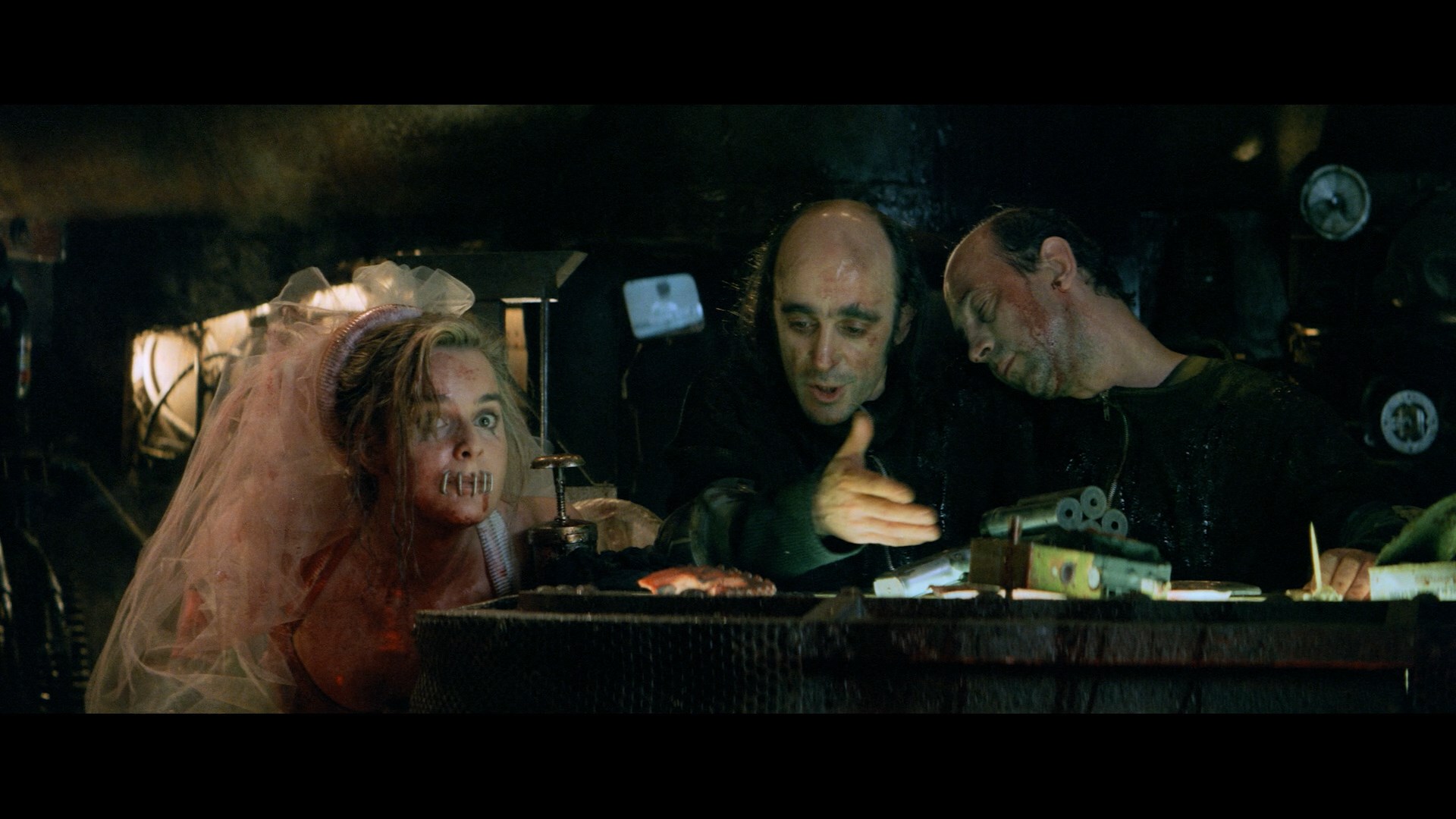 On the video extras side, in "Well-Done Baloney" (18m8s), Iglesia remembers making his first feature (following a short film), the clear influence of Delicatessen and Freaks, his favorite scene, and the very long, extensive prep process to get the film off the ground. In "Bad Blood Costumbrism" (18m24s), Guerricaechevarría discusses how the film evolved from a proposed second short film called Space Pirates and ended up getting the support of El Deseo, as well as where some of the crazier ideas generated along the way. Resines appears next in "The F*cking Boss" (14m42s), which covers his earlier familiarity with his director from art illustration gigs, his thoughts on the sheer lunacy of the demands of his role, and the risk-taking attitude that reigned supreme at the time. In "Some Crazy Sh*t" (17m30s), Arrizabalaga and Biaffra elaborate on the stories from the commentary about assembling the various elements of this cinematic world including the crazy ice cream truck and spaceship, as well as the earlier projects that paved the way for their work here and the creation of the bullet squibs. Finally in "Liters of Blood... Wonderful!" (11m23s), special effects artist Raul Romanillos adds on more stories about the often DIY nature of the makeup effects, the workshop where the team worked around the clock, and the contagious enthusiasm on the set. Also included are the prior making-of featurette, production footage reel, music video storyboards, and trailer.