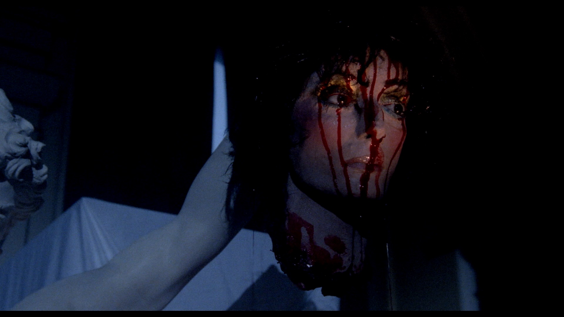 quick flashback) that made it far less than ideal. In 2017, 88 Films bowed the film on Blu-ray in the U.K. featuring a new 2K scan from the original camera negative, featuring LPCM English and Italian mono audio with optional English subtitles (translated from the Italian). Quality is considerably better than any prior edition, to put it mildly, with very nicely resolved film grain and strong detail throughout while retaining the somewhat gritty nature of the film stock we all know and love from that time period. The color timing is quite a bit different though and dispenses with the frequently unearthly, Phenomena-esque shades of blue seen in the lighting on other transfers, veering more to the yellow or greenish side here. Images in the body of this review are from the Severin, with comparisons seen below. The big extra here is "Aenigma: Fulci and the 80s" (76m31s), a collection of intercut interviews about late period Fulci including Claudio Fragasso, Antonio Bido, Michele de Angelis, Massimo Antonello Geleng, and Antonio Tentori sharing various anecdotes about working with the director during the final decade of his life. The English trailer and the Italian opening and closing credits are also included.