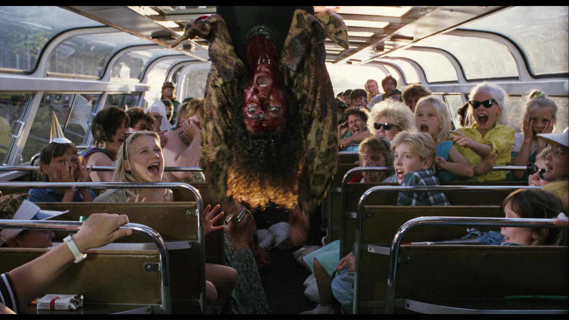 inconsistent results. The best option by a long shot is the 2017 dual-format release from Blue Underground, featuring a 2K scan approved by Maas and a transfer featuring the maximum amount of frame information (far more than most past releases) as well as much richer black levels and natural film grain. Some problem shots that looked blurry or out of focus on other transfers (such as the blonde floating on the raft) are also crisp and clear here. The first pressing featured insufficient encoding for some of the dimmer or darker scenes, which necessitated a revised second pressing with a replacement program for consumers; just email your name, complete mailing address (including country if outside the U.S.), and a copy of sales receipt showing purchase of the disc to AmsterdamnedBDReplacement@yahoo.com. As with the replacement disc for The Stendhal Syndrome, it's a notch brighter and looks better resolved with low-light grain faring better and looking less coarse. Audio options include the original Dutch track in DTS-HD MA 5.1 (which sounds great) or 2.0 (the original Dolby Stereo mix), the English dub (DTS-HD 2.0 Dolby Stereo mix), or French (Dolby Digital), with subtitle options including English (translated from the Dutch track), English SDH (for the dub), or Spanish.