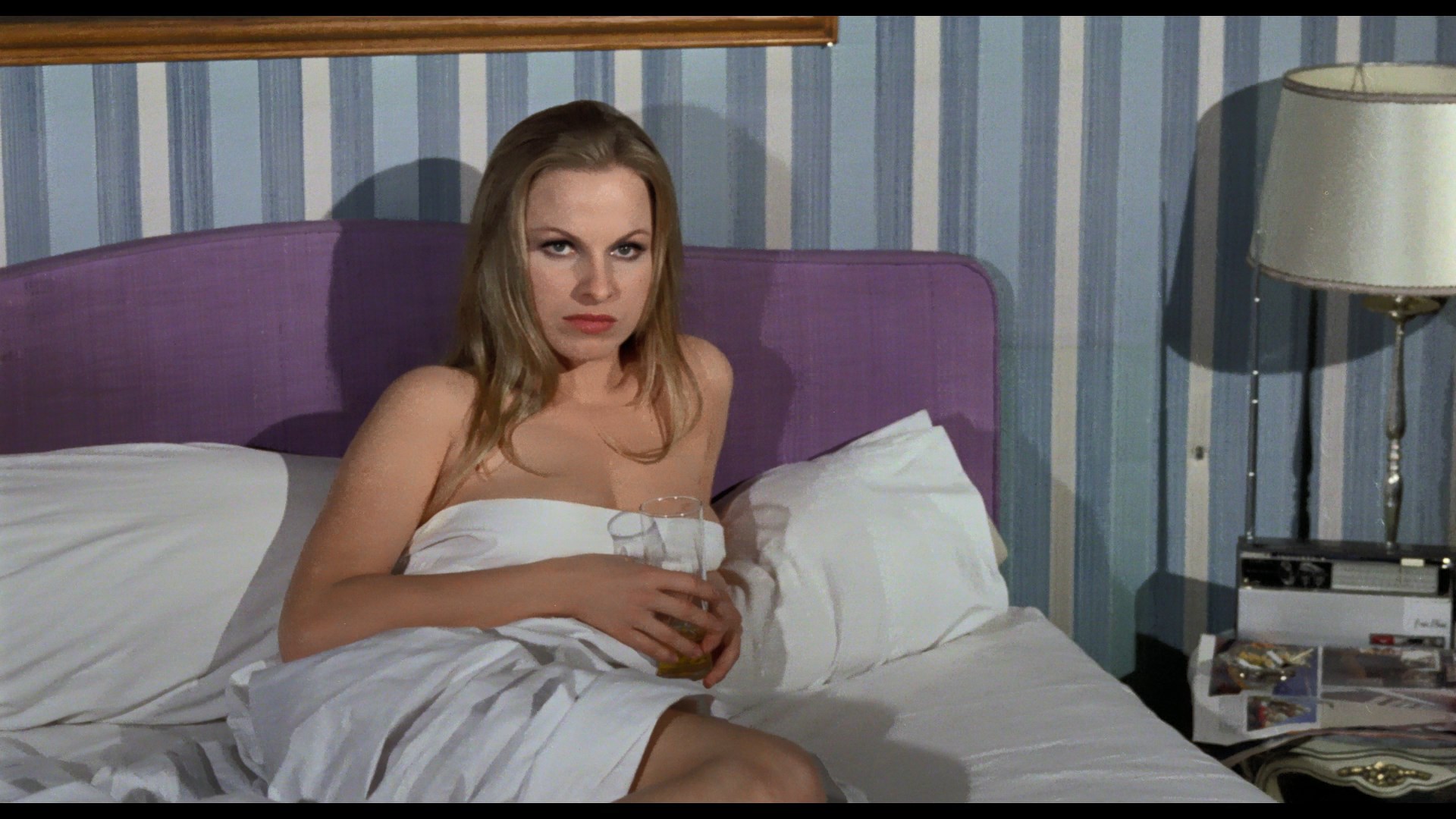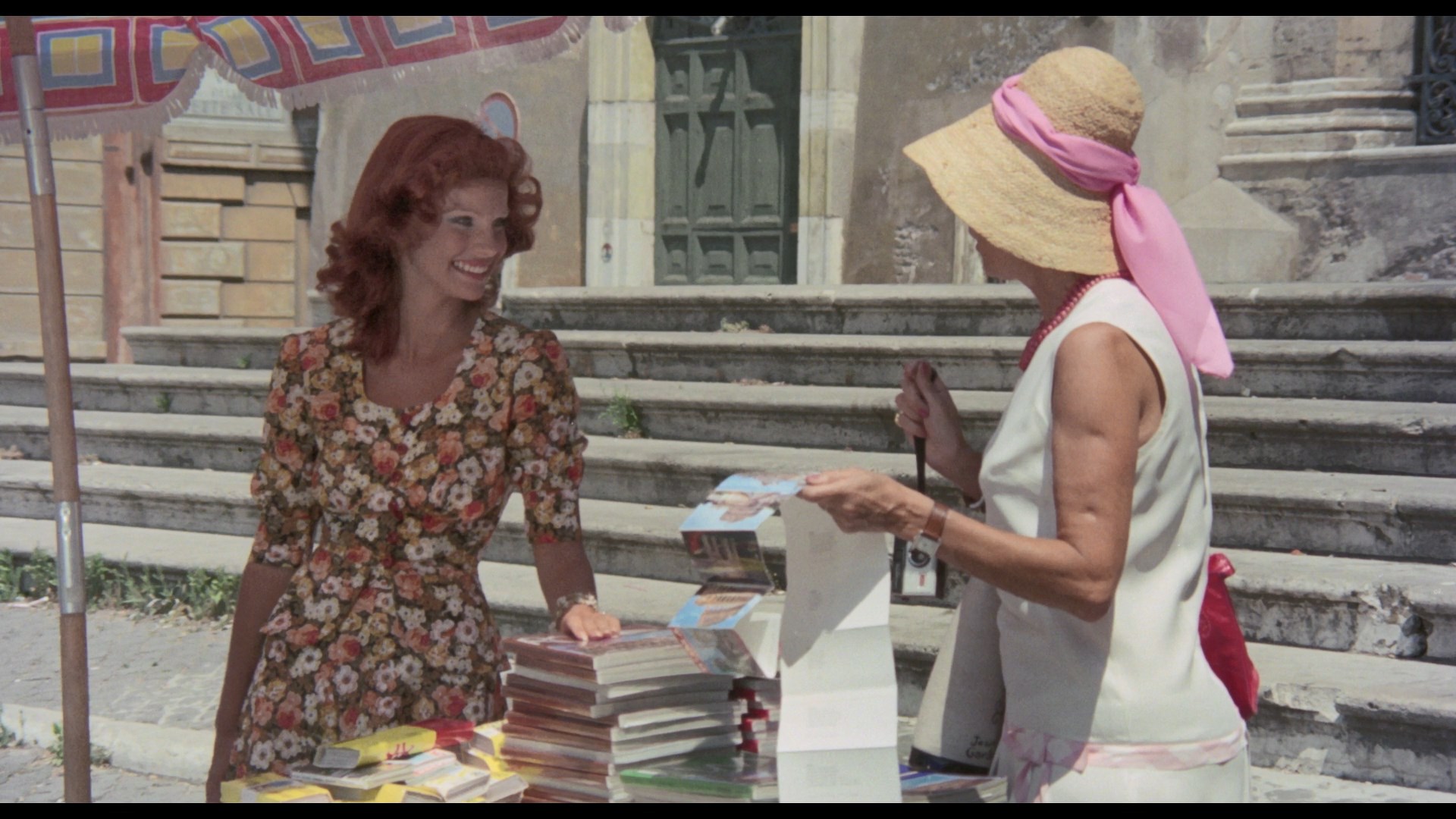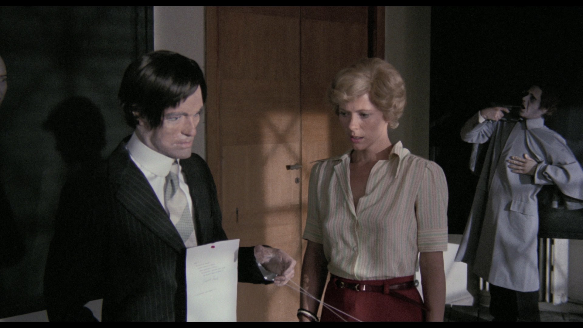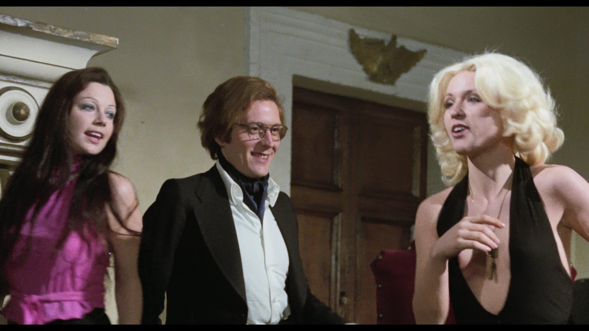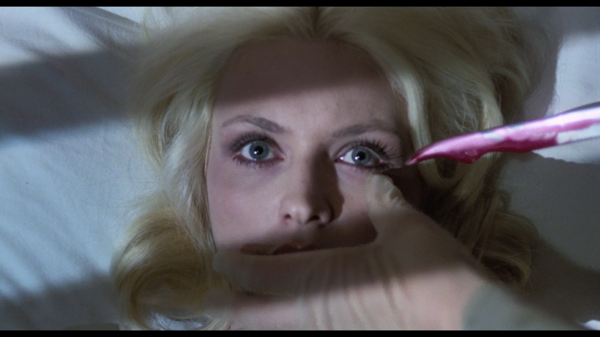 In addition to featuring radically improved image quality, the Vinegar Syndrome disc is also a great audio presentation since it gives you the Spanish track (with optional translated English subtitles), the very familiar English dub, and the elusive Italian track for good measure. The Spanish one (which has the best mixing and overall sound quality of the three) is really the way to go since that's the language almost everyone was speaking, and it really shows the film off to its best advantage. (Unfortunately, as with the earlier Blu-ray of My Dear Killer, a lot of the subtitles are timed far too fast to read.) In the one video extra, "Lady of the Mansion" (19m58s), Stewart (credited under her real name, Ida Galli) talks about her previous experience filming in Spain got her cast in the film, her fondness for the story, her work on other gialli, the mechanics of shooting death scenes in different genres, and her memories of the cast and crew including her director, whom she hadn't met before.