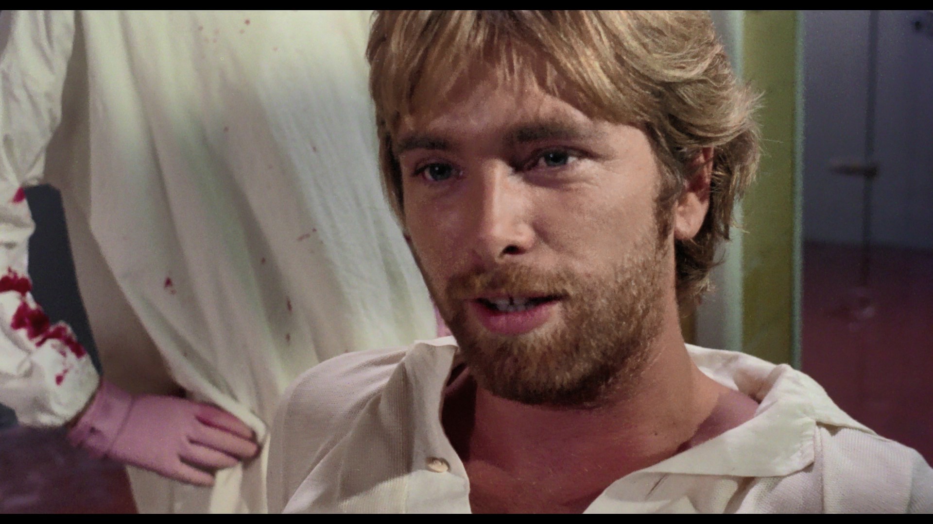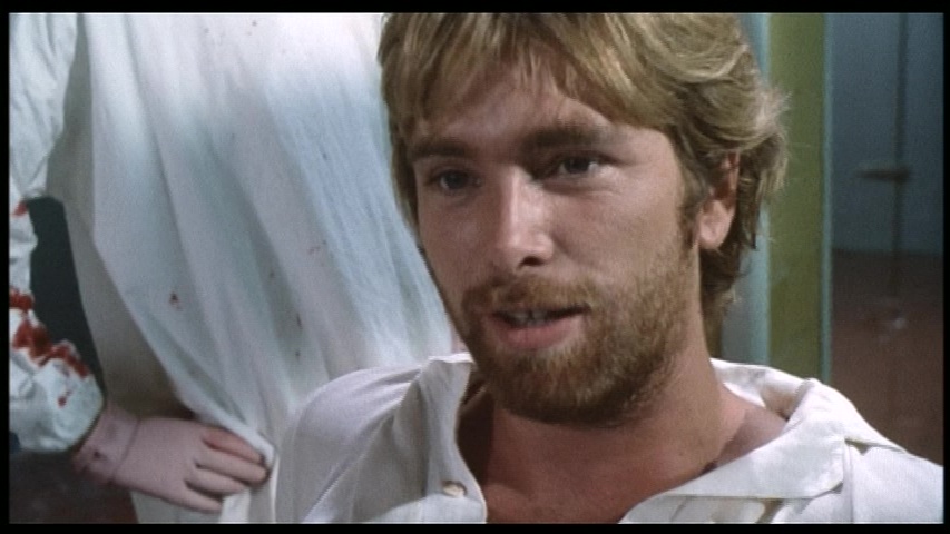for the camera, and even having sex on the morgue floor! Simona's piggish boyfriend, Ed (Lovelock, still sporting his beard from The Living Dead at Manchester Morgue), is peeved when her visions interfere with their sex life. One day a gunshot suicide victim found on the beach is wheeled in, and Simona recognizes the victim as a beautiful woman she had seen earlier. The brother of the deceased, a slightly dubious priest (Primus), believes the woman's death was actually murder, and Simona's research indicates he may be correct.