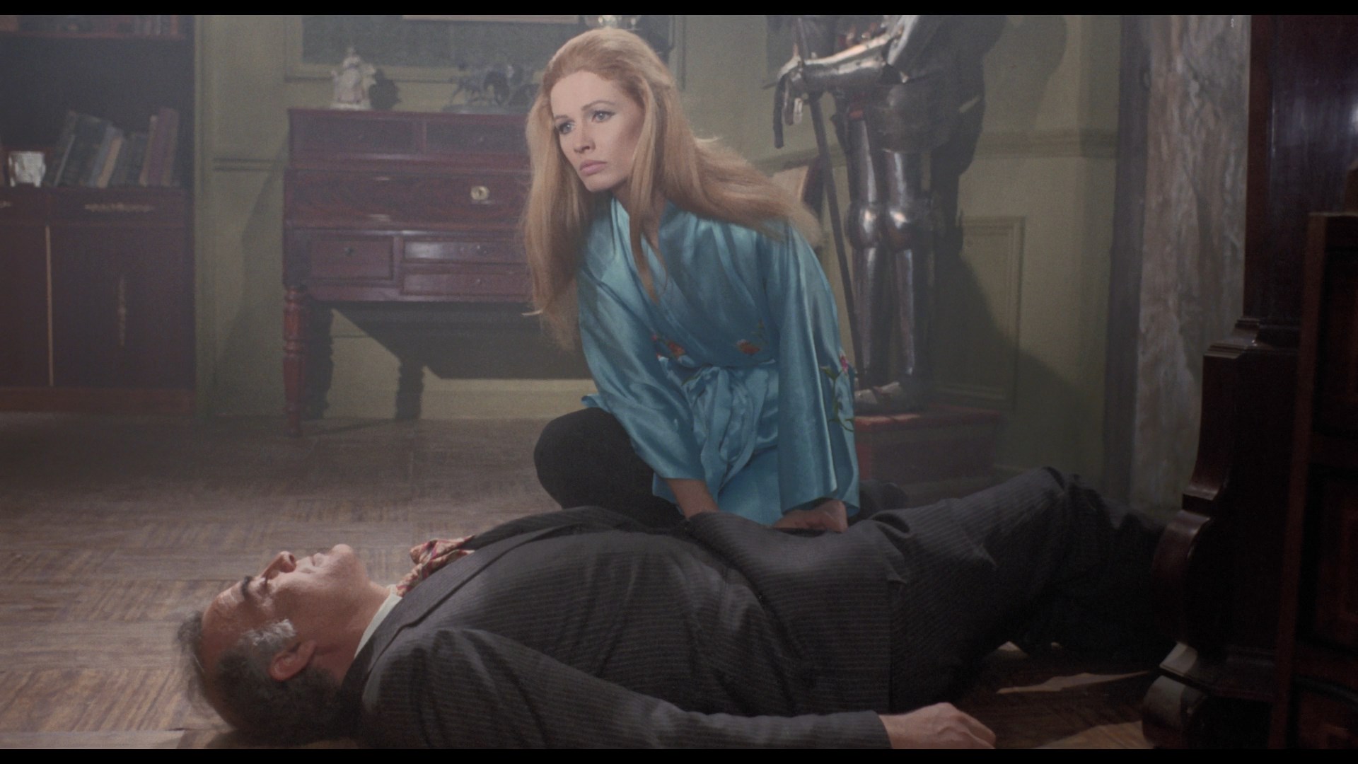 Never dubbed into English for export and mostly overlooked until it was given a censored British VHS release from Redemption, this one grabs you right off the bat with a moody prologue featured a bloody-handed mystery figure prowling through the castle at night before the dreamy music score by the great Piero Piccioni kicks in gear. The requisite sex scenes are diverting enough as well, though one moment at the 33-minute mark involving a candle seems to have been scissored down before release for obvious reasons. None of the actors are required to do anything too stressful here given the cardboard nature of the characters, but you do get a few great lines here like "Can you imagine Nixon and Mao solving their issues through cockfighting?" (Yes. Yes, we can.)