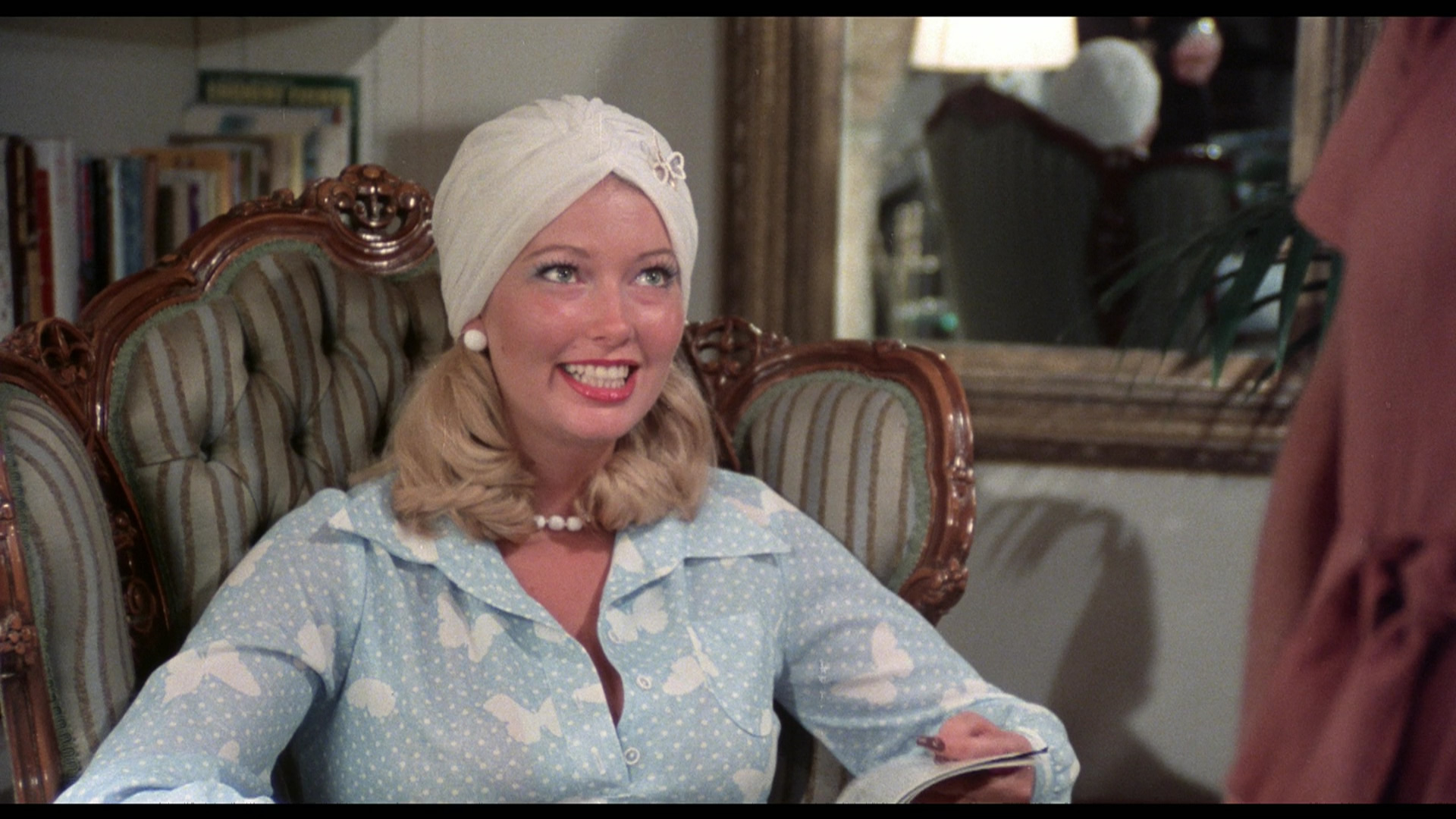 over a three-year search this was the only material that could be used be located, mostly in prime condition apart from some damage in reel five. For the vast majority of the running time it looks beautiful, restoring the film's glossy look as intended and, apart from a few scratches and damage marks, it's an ideal way to make the acquaintance of this essential classic of its kind. The DTS-HD MA English mono audio sounds great (much better than the fairly muffled DVDs), which helps make out some of the more slurred or softly delivered dialogue. The biggest extra here is a 69-minute audio interview between Seagrim and film historian Casey Scott, chatting about how she ended up coming to San Francisco and ended up in working both behind and in front of the camera on adult films, sometimes with then-husband Zachary Strong, with credits including Deep Tango and Masterpiece. It's a valuable historical snapshot of the Bay Area during a pivotal period in pornography spanning little softcore productions to a hotbed of theatrical productions at the height of its popularity. It's a casual but entertaining conversation (their early bit about Confessions of a Peanut Butter Freak is a keeper) with a lot of names covered including the Mitchell Brothers and de Renzy ("I thought he looked like a pirate") as well as stories about police busts and the practice of weekend shoots with gay and straight versions of the same basic script being shot back to back. She also reads a few samples of her journals from the time, which is a nice touch. Also included is "Parochial Passion Princess," a straightforward 12-minute de Renzy adult short film about a schoolgirl who goes for a country drive with her incredibly skeevy teacher for some afternoon delight at his house.