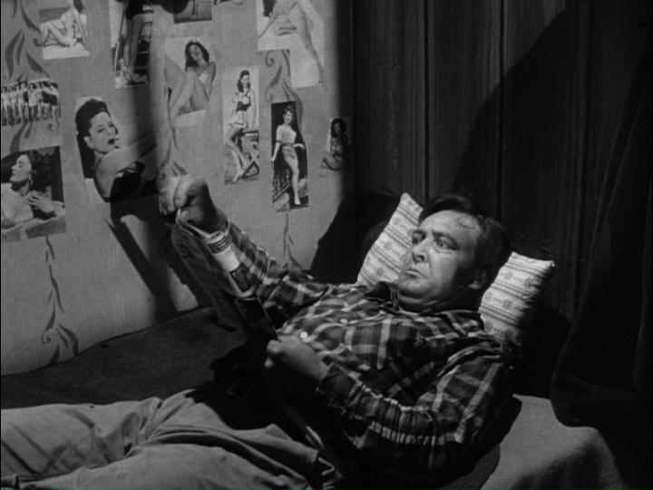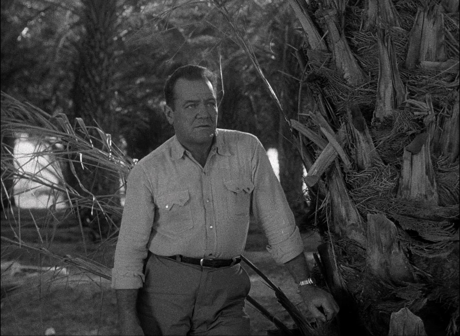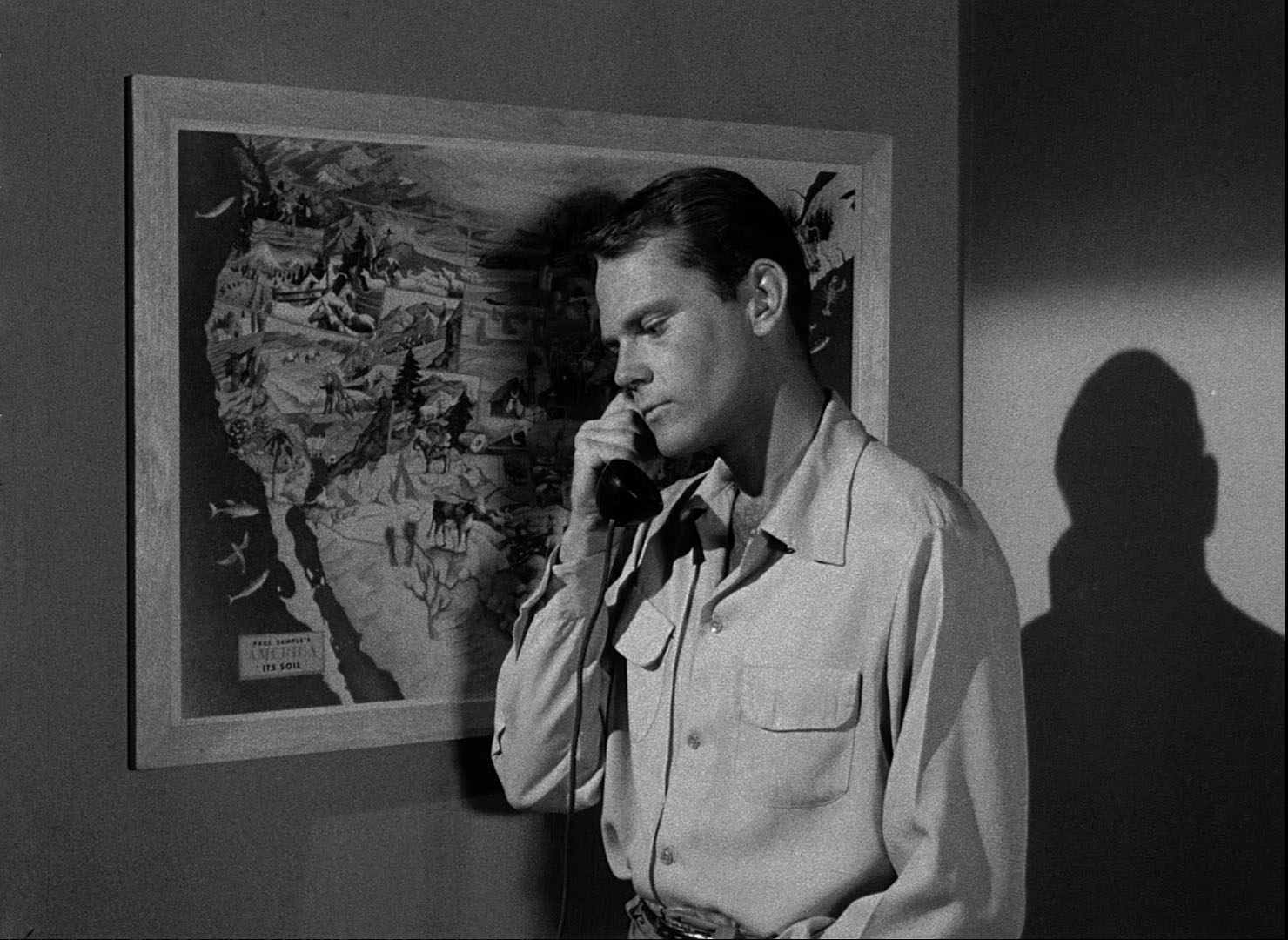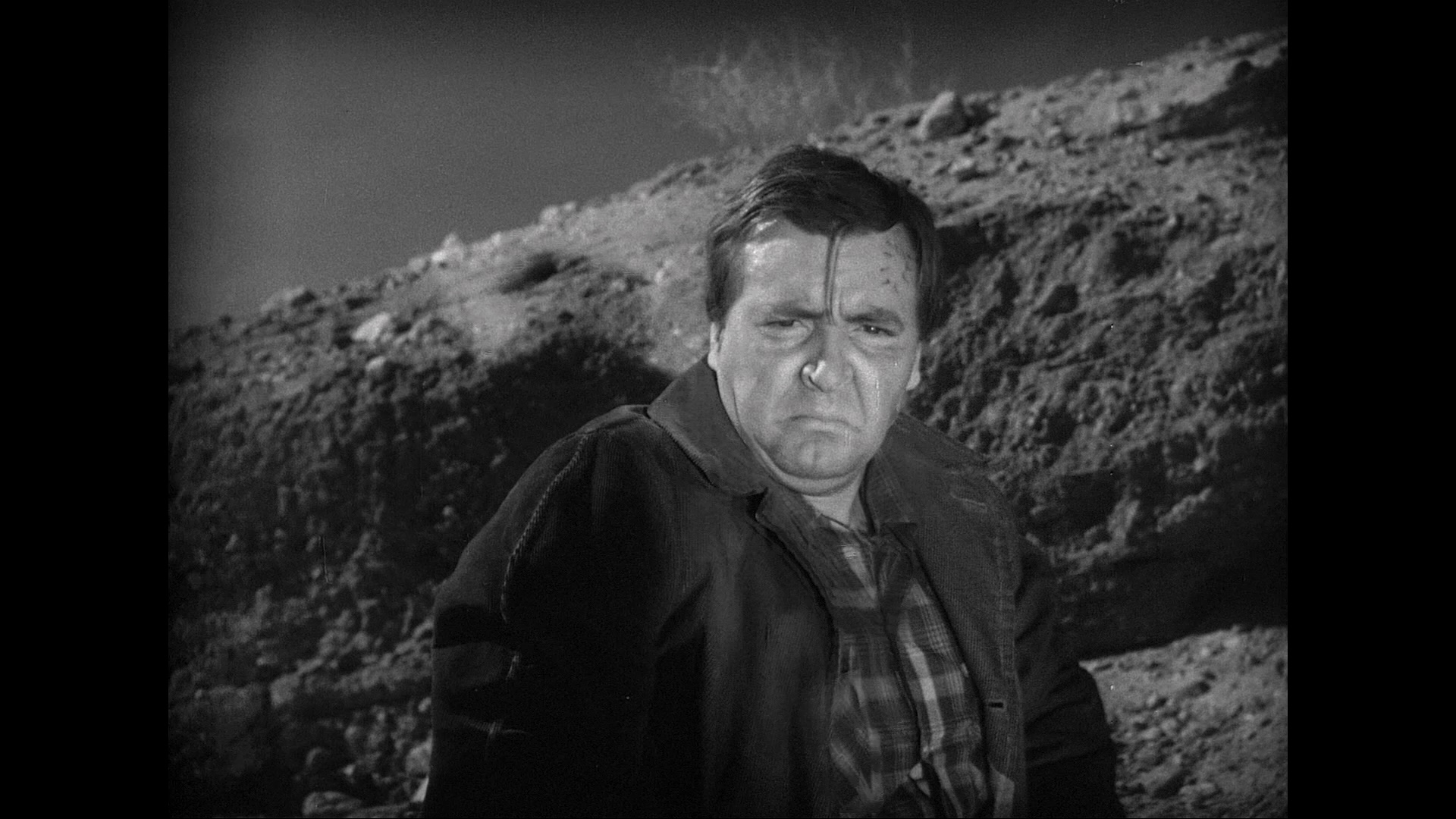 Detail increases nicely with a more refined and natural presentation of film grain (which looked a bit softened on the DVD), and blacks are deeper and more impressive here as well. The DTS-HD MA English mono track (with optional English SDH subs) is fine considering the patchwork nature of the audio itself. A very in-depth and rewarding audio commentary by Tim Lucas really tears into this one as a study in postwar alienation and fear of failure, a reading borne out by the hero's own narration and the events in the film. He also fills in the strange history behind the film including its origins as a script called The Unseen, the reason it ended up being shot non-union out in the desert, and the backwards marketing tactics that ended up selling the film and its poster before it was even shot. There are some extremely long silent gaps here, though that may be due to the same factors involved in other MGM-connected audio commentaries over the past year or so (to put it tactfully). A dupey theatrical trailer is included along with bonus ones for The Monster That Challenged the World, Invisible Invaders, Donovan's Brain, The Magnetic Monster, and The Black Sleep.