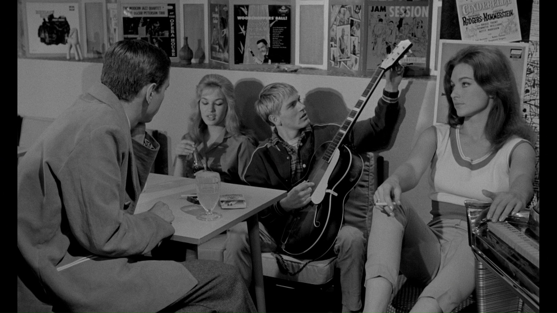 Gillian Hills, who later went on to fame by frolicking naked with Jane Birkin in Blow-up and appearing in Hammer’s Demons of the Mind, stars here as Jennifer Linden, a disaffected teen whose divorced architect dad, Paul (Farrar), has just married a French émigré, Nichole (Adam). We first see Jennifer in her natural habitat, a smoky beat café where she sways to infectious music (the first film score by the legendary John Barry) and dances with her equally antisocial friends including Dave (pop singer Adam Faith), Tony (McEnery), Plaid Shirt (Reed, who appeared in The Curse of the Werewolf the same year), and Dodo (Field). They also go out for wild joyrides at night, allowing Jennifer to vent her frustration at being cast aside for this French interloper. When Nichole crashes Jennifer’s favorite hangout, the girl suspects something’s up when a stripper next door at Les Girls recognizes the new stepmother; this turn of events puts Jennifer in the sights of the club’s greasy, predatory owner, Kenny (Lee), who’s related to Nichole’s less-than-pristine past.