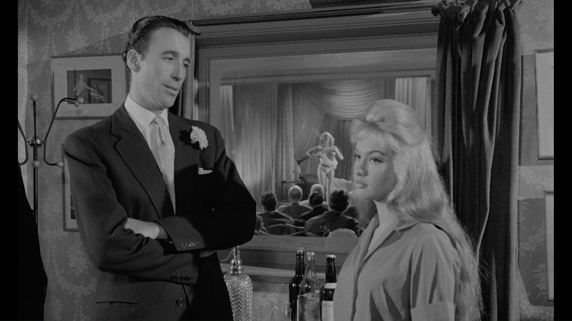 Like many of its peers, Beat Girl fell into the public domain in the United States and came out in various editions, mostly terrible and usually missing footage. Several bargain basement companies took a stab at it, with the VHS option from Kino offering the most complete and correctly framed option for a long time. However, you're far better off with the 2016 dual-format release from the BFI, which contains a Blu-ray and DVD with nearly identical special features. The default play option here is the 87-minute UK theatrical cut (before it was censored for most local theaters), which features the spiciest striptease numbers (which are about as far as a mainstream UK film could go at the time) and the best overall edit of the film (identical to the one on the Kino VHS in terms of content). It's absolutely beautiful and pristine, blowing away every other muddy version out there by a long shot. The English LPCM mono audio comes from an optical track, apparently the best element that survives, so it's a bit flat and tinny compared to mag track audio but still much cleaner and more robust than other video releases.