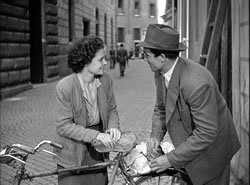 Shot on the city streets with entirely non-professional actors, Bicycle Thieves is definitely a powerful social statement, though even viewers unaware of its entire historical context can still enjoy it as one of the most moving films about a father and son ever made. Its multiple levels of impact made it an instant worldwide hit and a significant breakthrough for Italian cinema, earning a special Academy Award (as only special ones were given out on occasion before a permanent Foreign Language Film category was established). Like many other major foreign films of the '40s and '50s (including several Bergman and Fellini titles), it was released independently and presumed to fall into public domain when the US rights holder dissolved. Even as the film's reputation continued to soar with the film school wave of the '70s, it was mostly seen in tattered, dupey-looking prints and terrible video transfers well into the '90s. Image eventually released it on laserdisc and then DVD in the late '90s, but this wasn't a significant improvement by any means even if the material licensed from Corinth was the best available at the time. Criterion's double-disc DVD release in 2002 (the one that introduced the Bicycle Thieves title to the US) was a huge improvement with a solid restoration job that made the film much easier to appreciate in every aspect. Extra on the Criterion