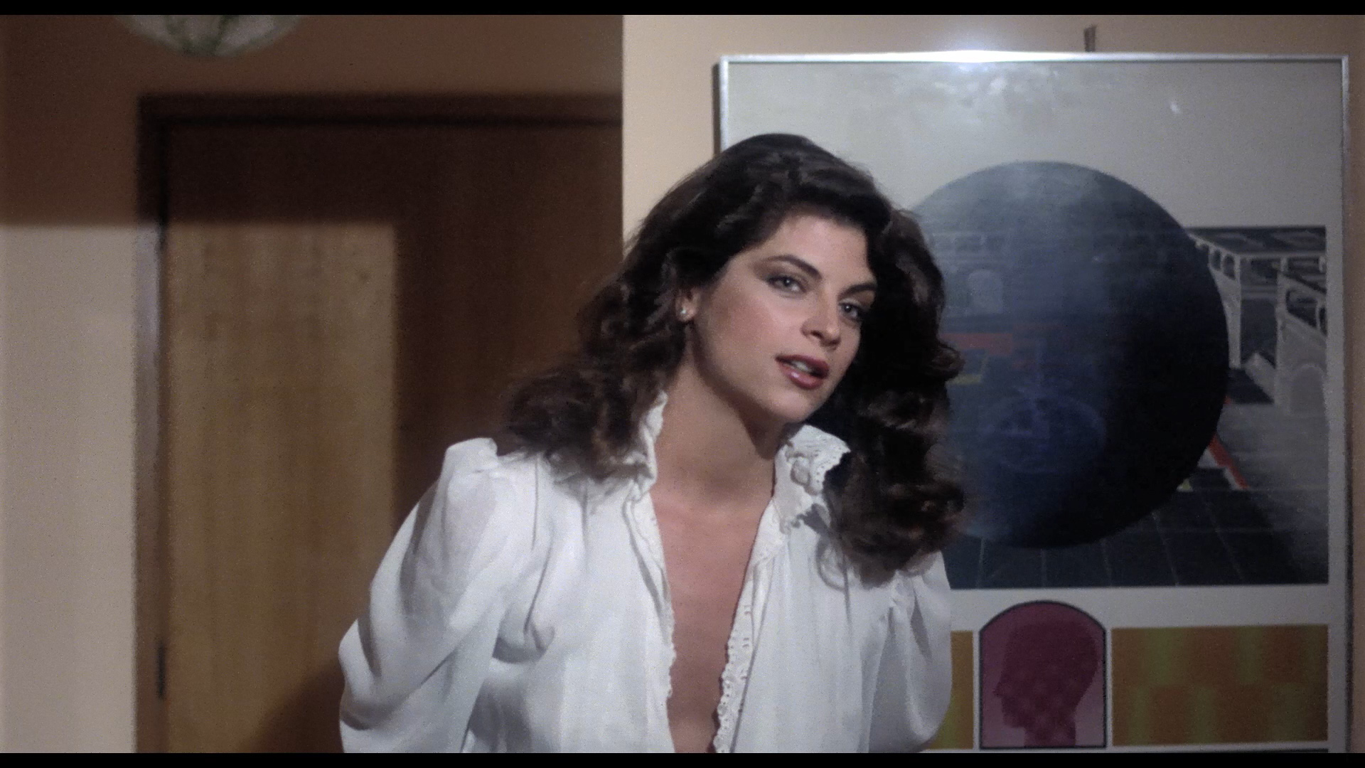 That said, Mastorakis' penchant for fiddling with filters and other video chicanery is still in evidence here; the worst-looking segment of prior releases (an early bit with Bottoms walking around Athens wearing a stunning "I Love My Dentist" shirt) looked like it was on the verge of collapsing before, and it's pretty rough here for some reason. (Compare the second frame grabs below.) That means the inconsistency you see here is likely how the master was delivered, so take it for what it is. The 5.1 remix is presented here along with a more satisfying 2.0 stereo version, both DTS-HD MA. The shorter theatrical cut is also included (1.78:1 widescreen) in standard def from a very dated, shaky source and doesn't make for terribly enjoyable viewing. The "Films of Nico Mastorakis Part One" video is carried over here along with the two music videos, and you also get a different (and very spoiler-y) trailer as well as the older DVD and VHS versions and a bonus one for Nightmare at Noon. New here is a lengthy still gallery (5m34s) complete with the entire, NSFW cast photo spread published in Playboy.