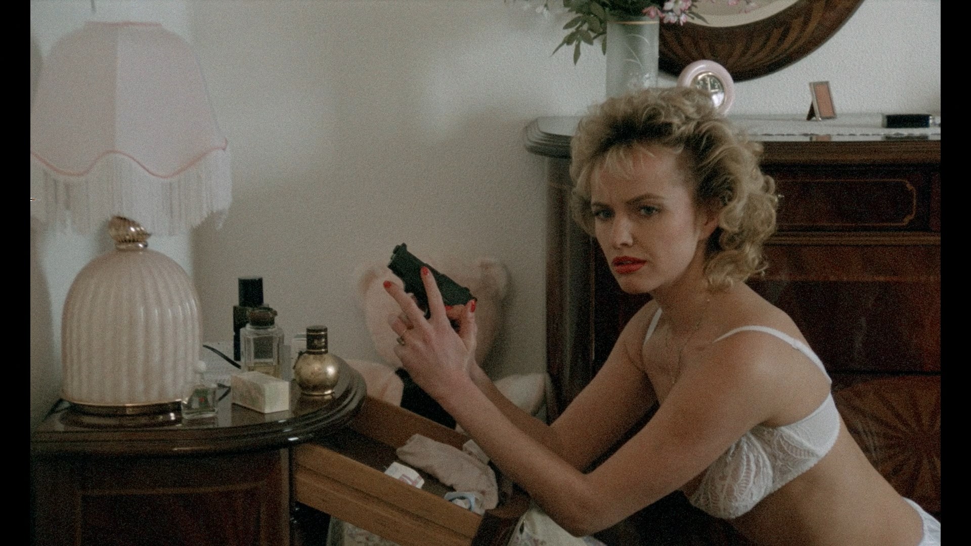 excellent while preserving the rather rough and grainy veneer of the original feature. The 1.66:1 framing looks dead on and detail is solid throughout; audio options are the English and Italian tracks (DTS-HD MA 2.0 mono), and since the film was completely dubbed either way, you might as well go with the English since it features Law looping himself. Optional English SDH and English-translated subtitles are provided, and it's interesting to see how the Italian track diverges at points throughout. A new audio commentary by Eugenio Ercolani and Troy Howarth features a lot of info about all the major players with a particular focus on Bergonzelli while touching on all the actors including adult film star Olinka Hardiman, who occasionally went legit-ish in a handful of films like this. They also go into the state of Italian genre filmmaking in the late '80s, the locations, and the film's very bumpy distribution history. In "Gerard's Delirium" (19m13s), Di Stefano looks back at the making of the film, his own background growing up in Tuscany, his father's theater background, and some of the other roles that benefited from his "sweet gaze." In "Killer's Muse" (28m21s), Christensen recalls her start doing theater, her falling in love with Italy and deciding to live there, her pragmatic approach to the film's nude scenes, her memories of Law, and her awe at working with the kind Mitchell. Finally "Once Upon a Time in the Italian Eighties" (29m12s) is a career-spanning chat with assistant director Corrado Colombo about the ups and downs of the last great decade for Italian horror, including prestigious figures he brushed against on the set, the cost-efficient means of achieving special effects, the pilfering of ideas from earlier landmark films like Repulsion, and his thoughts on working with Bergonzelli whom he compares to Ed Wood. Also included are the Italian front and end titles, plus the grammatically baffling English trailer.