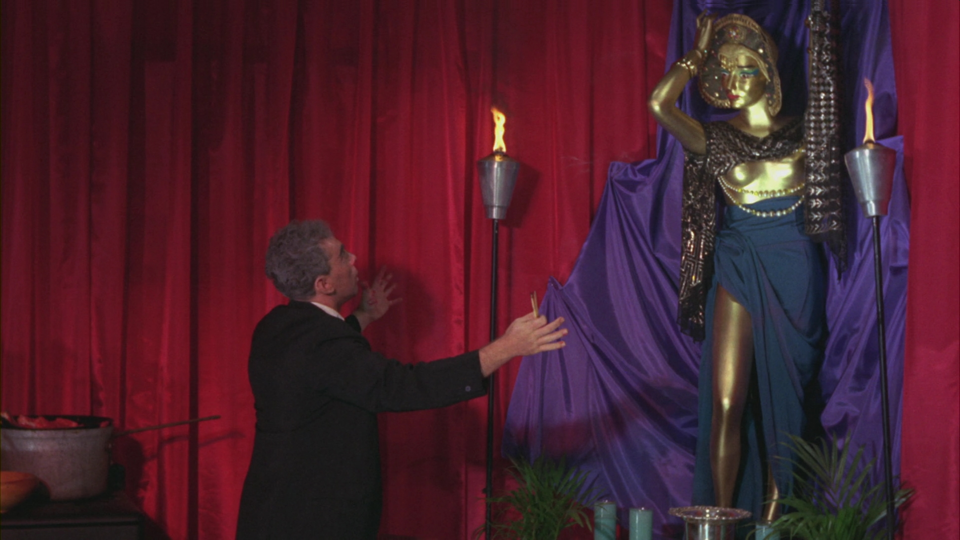 Thomas Wood"), attend a local class on Egyptian cults and learn about the savage blood rites of the Egyptian god Ishtar (or Eetar, or about ten other pronunciations). Could this have something to do with the vicious murders of young women being committed in this sleepy Florida town? Well, since Fuad is seen wielding his machete from the opening scene, it's clear he's planning Suzette's party as the climax of his "blood feast" to pay tribute to the spray-painted mannequin deity in his restaurant.