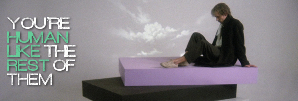 Culled together in the BFI's dual-format Blu-Ray and DVD set is a collection of Johnson's work starting with his most widely-seen debut effort, "You're Human Like the Rest of Them." This 17-minute, 1967 adaptation of his decasyllabic poem features actor William Hoyland (later seen in far more mainstream titles like Hellboy and For Your Eyes Only) as a teacher reciting the lines first in a hospital surrounded by aging pensioners (being lectured on proper lifting techniques by a nurse) and then at work in a classroom. Along the way there's quite a bit of absurdist comedy, including an imaginary but functioning shotgun and punctuated cutaways to cows and anatomical drawings. Johnson's much-noted debt to Samuel Beckett is obviously in play here, especially the classroom sequence, but some of the visual flourishes are striking including a sudden switch to vivid color at the end for a brief montage.