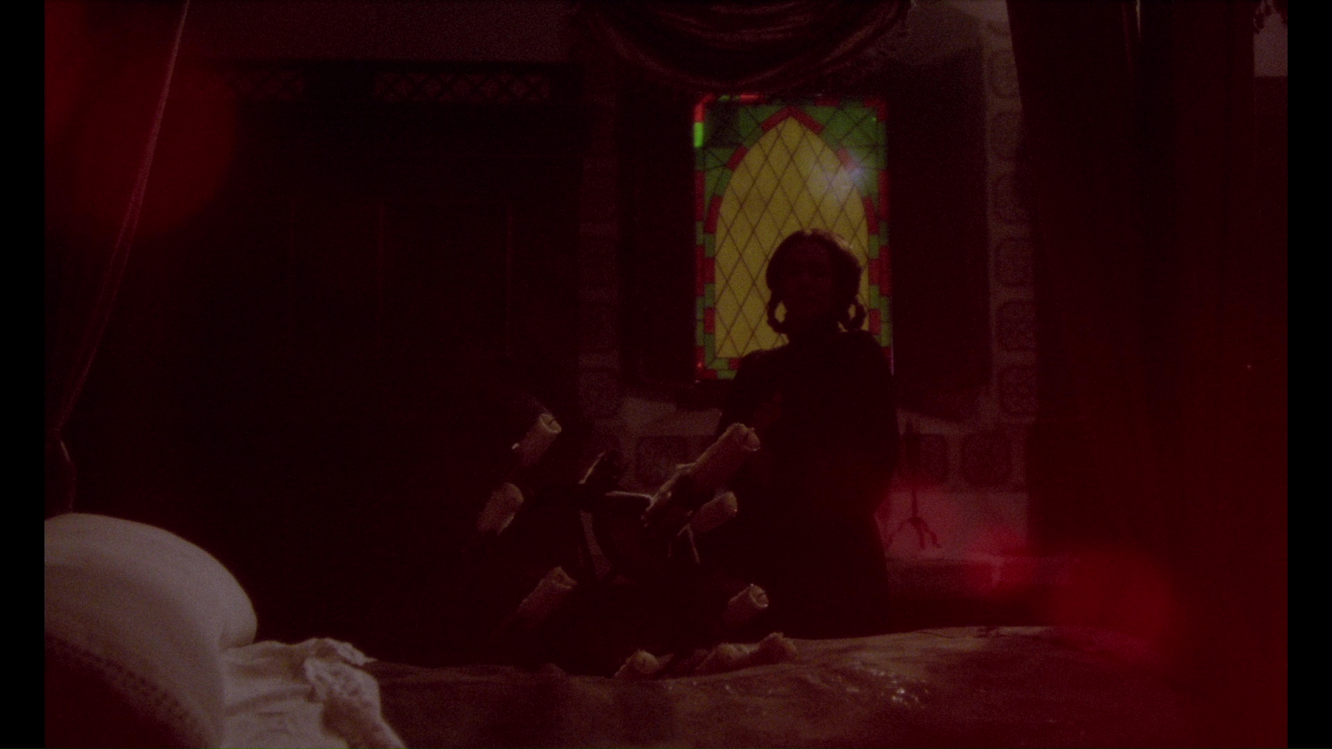 a dark spiritual force at work in this story isn't a major shock when it's revealed at the end, with blatant clues dropped along the way and Naschy making inventive use of blazing, rose-colored light when Leonardo's up to his nastiest shenanigans. It's really the decision to tell this story with such a heavy vein of sardonic humor that comes as the biggest surprise, with the frequent sex scenes justified by the plot as well as a way of celebrating the freedom of storytelling in the recent collapse of heavy Spanish censorship. It's also a beautifully mounted film with a fine eye for color, costumes, and decor, accentuated by a fine score by Angel Arteaga. Interestingly, this could have easily been a religious scare film with just a couple of artistic tweaks, but in Naschy's hands it's more complex and challenging than anything so simple. Some of his flourishes bite off a bit more than they can chew (a sped-up comical sex romp and some freeze framing feel out of place), but others are audacious enough to work against the odds like a chilling intrusion of newsreel footage as a vision of the future. Never released theatrically outside of Spain, The Devil Incarnate was a mystery title on Naschy's filmography for most English-speaking fans for a very long time until fan-subtitled copies started popping up from fuzzy VHS copies and later off of a very brief Spanish DVD release. The Mondo Macabro Blu-ray, culled from a new 4K scan of the original negative should prove to be a real eye opener for many viewers as it features a sterling presentation of a film that's proven very tricky for standard definition to handle in the past. The stylizing lighting, occasional heavy filters, and elegant pastoral landscapes really