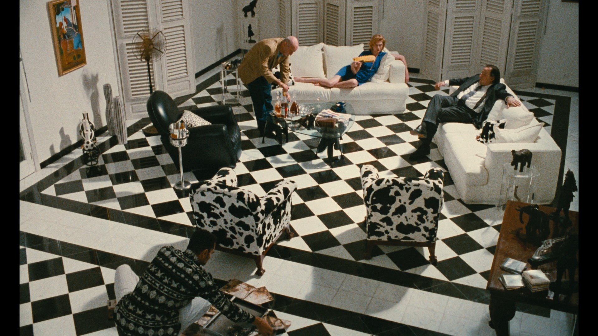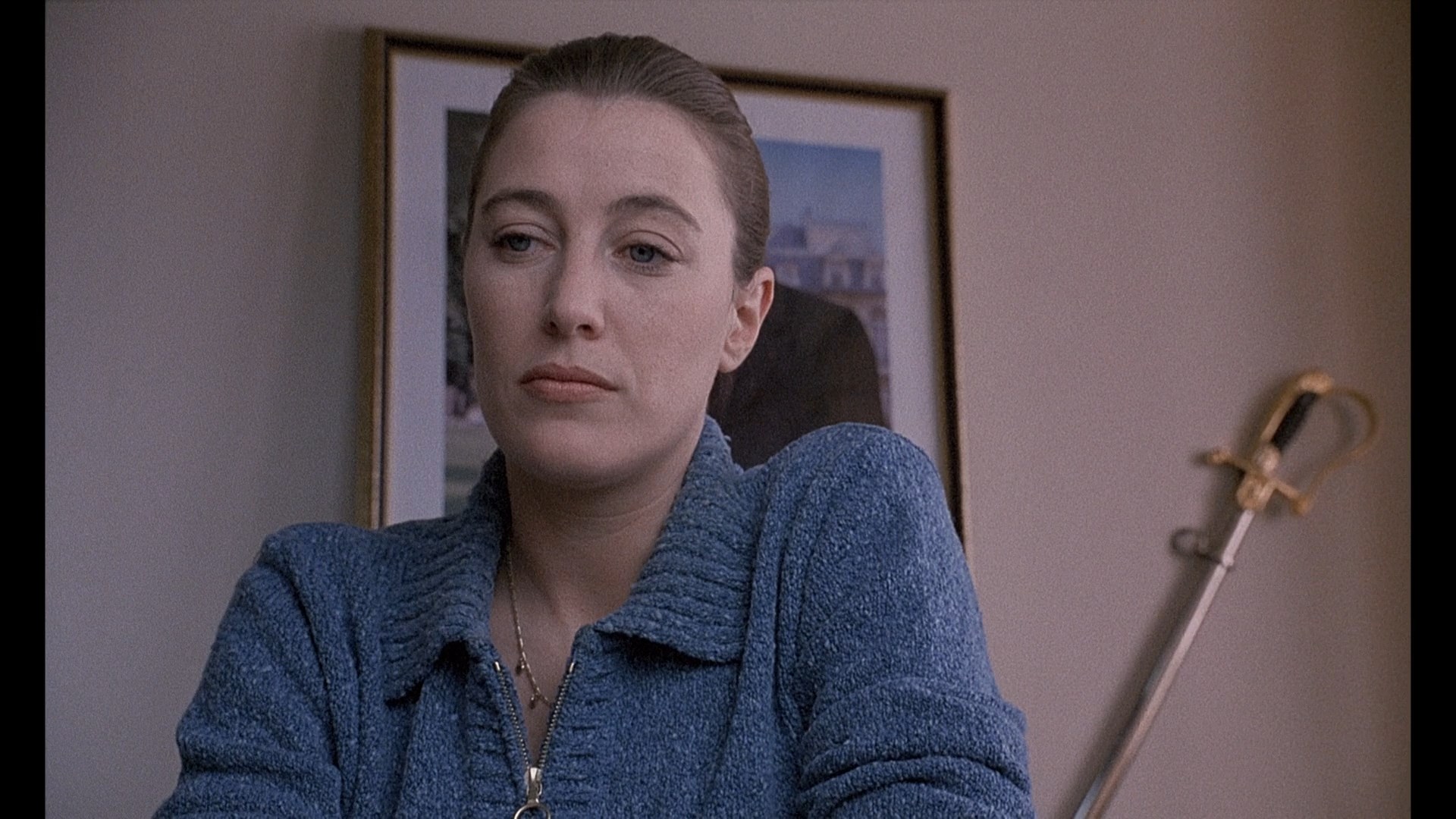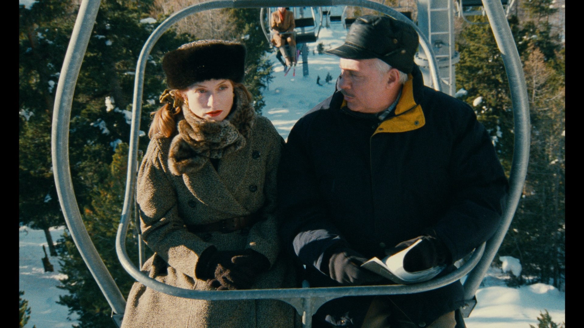 Cérémonie. Released in the U.S. by New Yorker Films both theatrically and on VHS, this eventually went over to Cohen for a pretty nice Blu-ray release in 2016 featuring a Major and Klein commentary, a reissue trailer, and a "Many Forms of Love" interview with Cluzet (42m32s) by New York Film Festival director Kent Jones covering the actor's work with Chabrol. The Arrow Blu-ray is the only one of the second batch to retain the yellow leaning, though it's toned down here relatively speaking and not that bad once your eyes get used to it after a while. Otherwise it looks good with fine detail throughout. A new commentary by Barry Forshaw and Sean Hogan helps put the film in context within Chabrol's career and really goes into the nature of how his tendency to crank out films at a rapid pace hampered his status among the auteur-centric crowd but ultimately may have helped him in the long run. In "Chabrol’s 'Soap Bubble'" (14m36s), Catherine Dousteyssier-Khoze (author of Claude Chabrol: The Aesthetics of Opacity) uses Chabrol's own term for this film (thus the title) as a jumping-off point for analyzing some of his more playful efforts like this and Blue Panther, with an exploration of how production design choices reflect his twisty stories. The Zoom conversation "Film as a Family Affair" (38m11s) features Chabrol's stepdaughter and frequent assistant, Cécile Maistre-Chabrol, chatting about her first exposure to show business through the theater, their working relationship, his pun-loving personality, and his methods on set. Also included are a Magny intro (2m28s) about the film's significance to Chabrol despite its middling box office reception in France, scene specific Chabrol commentaries (24m20s), an EPK-style vintage making-of featurette (8m22s) with the cast and crew, an interview with Huppert (25m38s) conducted by MK2 covering her first meeting with Chabrol and their working process together, the French trailer, and a stills gallery.