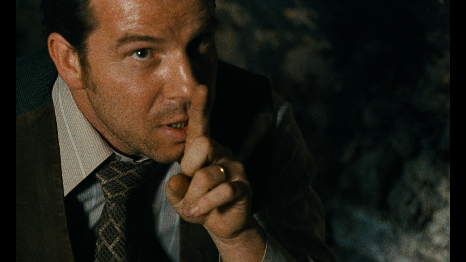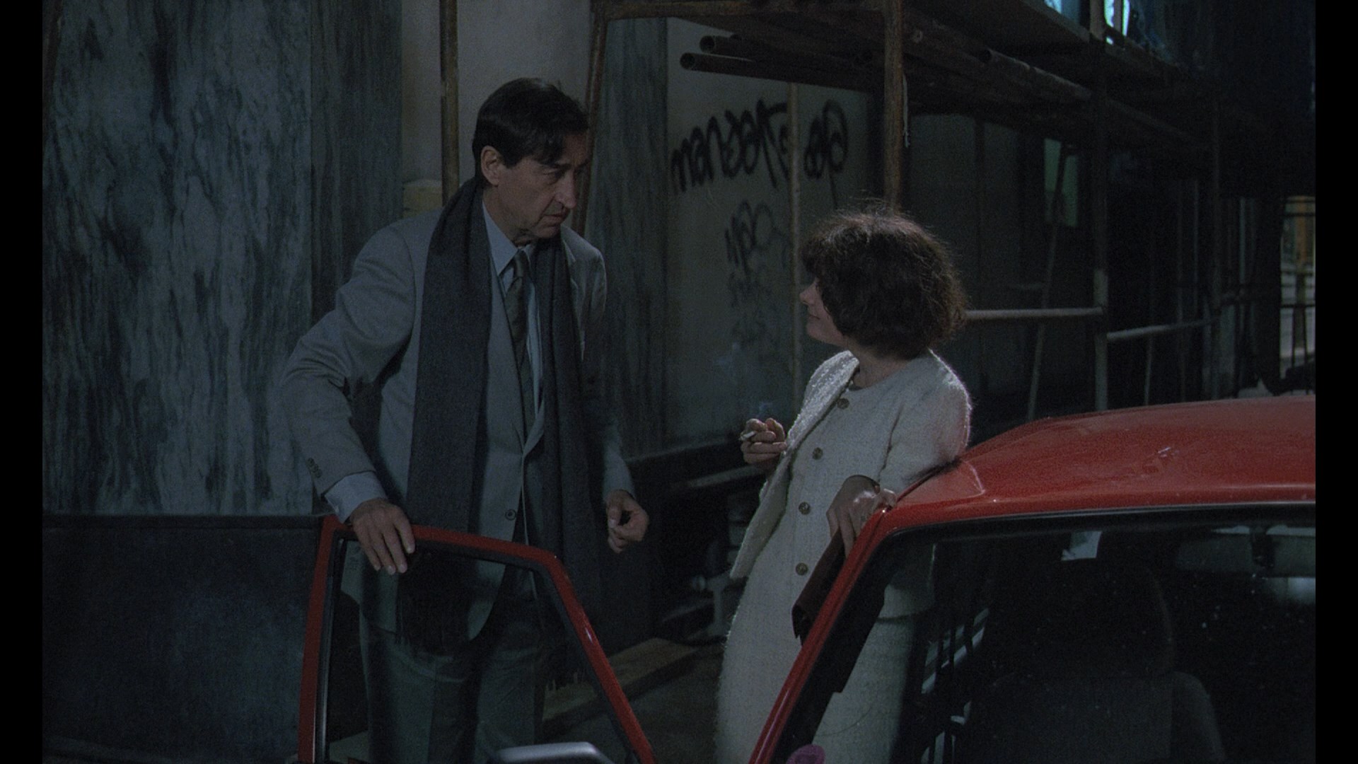 more character development here as well as a backstory to play with. Like the preceding one, this got very limited play outside of France until the DVD era when English-subtitled releases started popping up in the U.S. and in Europe. The first Blu-ray from Cohen (as mentioned above) was a big leap at the time and still holds up well, apart from some minor damage again here. That release features another Major and Klein commentary track, the 2014 reissue trailer, and 1989's Danger Lies in the Words (94m14s) directed by Chabrol from the The Secret Files of Inspector Lavardin TV movies.