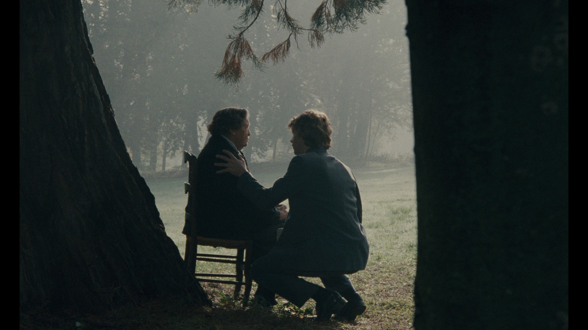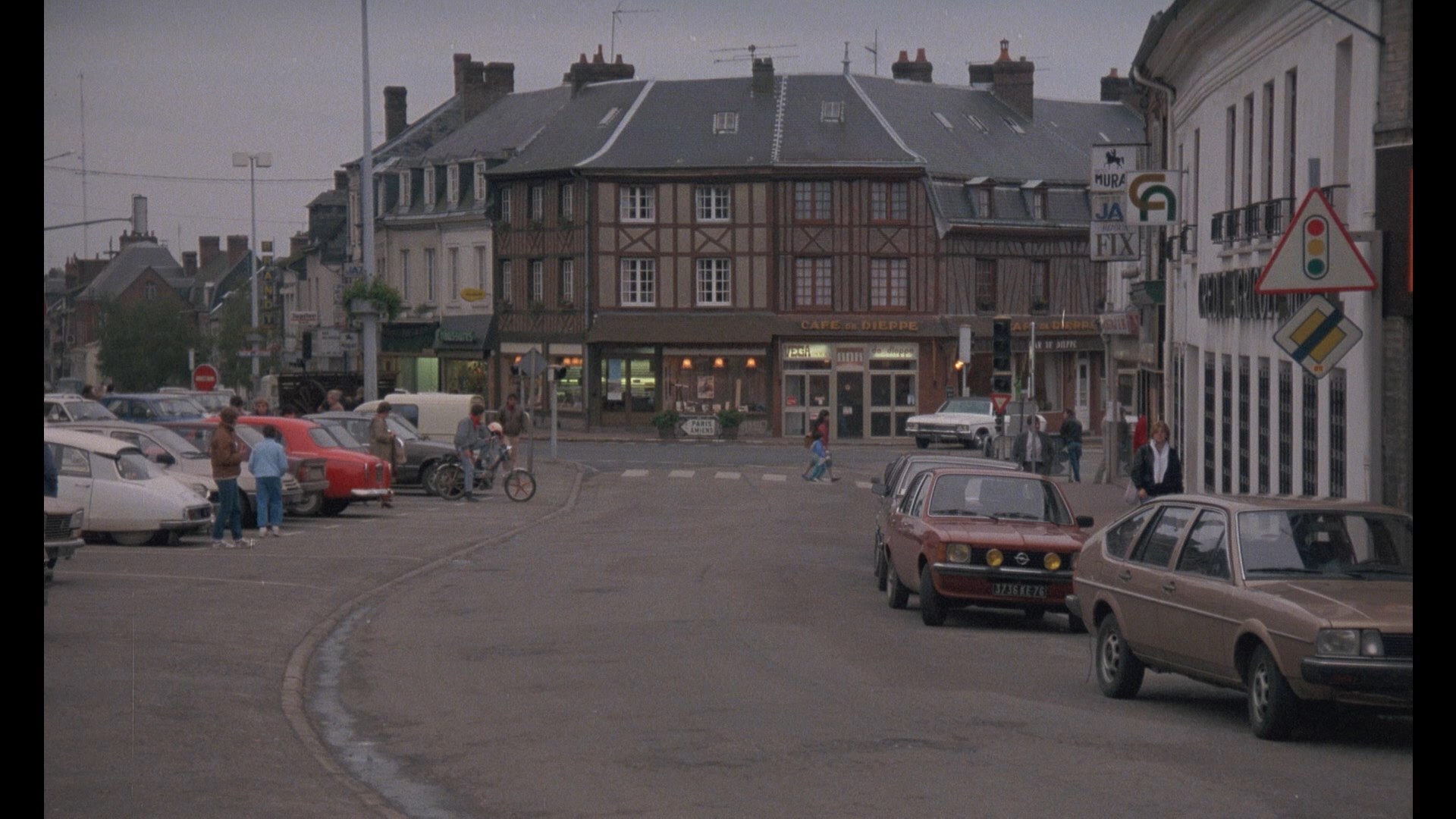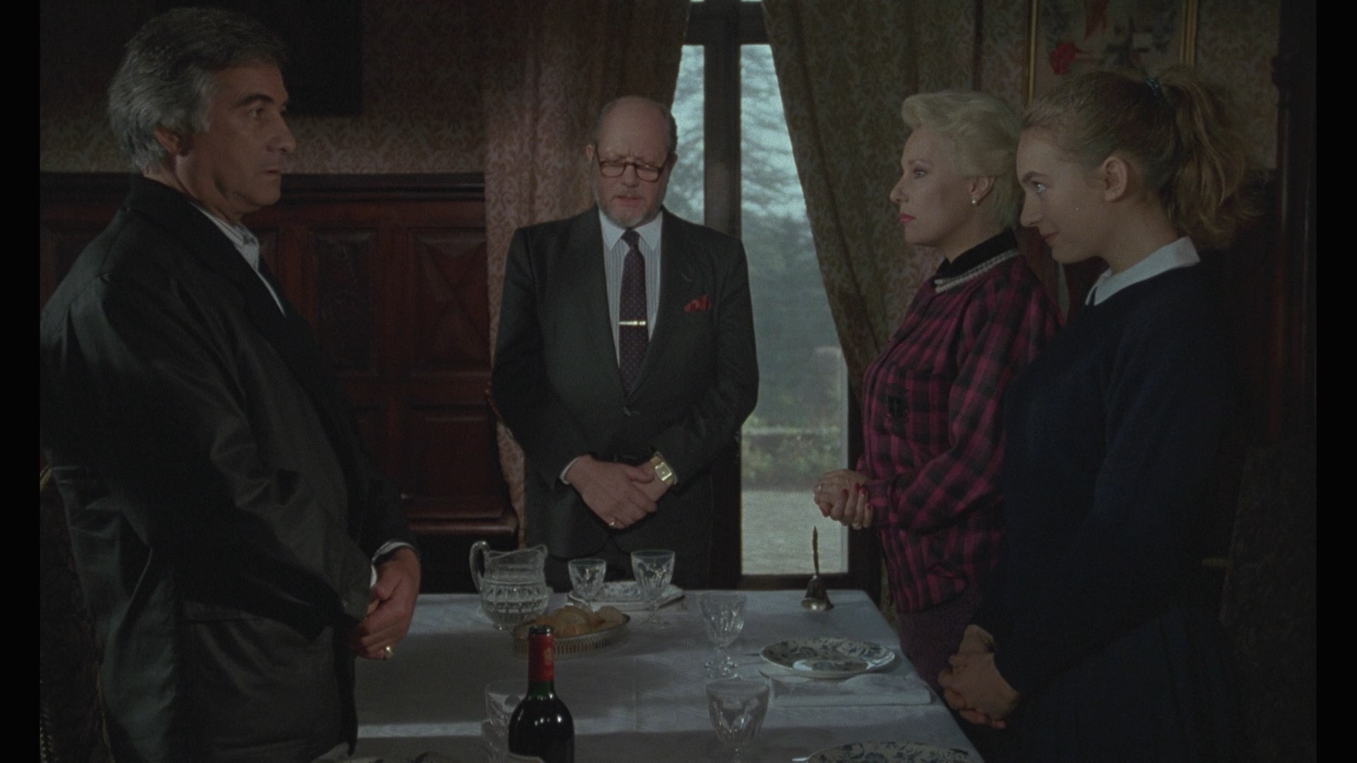 completely different slate of bonus features starting with a fine new commentary by Ben Sachs who takes up a scholarly reading of the film interpreting the symbolism of the locations and character placements, the theme of nefarious activity beneath the surface, and the ins and outs of Chabrol's personal life at the time as well as his career including the family affair mode of his work. A interview with Ian Christie (12m35s) covers his memories and appreciation of Chabrol from their time interviewing together and his thoughts on the filmmaker's work, while a complete 1994 interview between them at the BFI at the National Film Theatre (74m35s) covering his early Cahiers du cinema days (and his status as a rare native Parisian among the French New Wave gang) through his late career resurgence. Pulled from the film's French DVD release are an intro by film scholar Joël Magny (3m14s) and select scene commentaries by Chabrol (21m43s), plus you get a fantastic 1985 episode of the Swiss TV show Special Cinema (29m38s) featuring Chabrol, Poiret, and Audran talking about the film with director Francis Reusser and actress Isabel Otero. Also included are the wild French theatrical trailer (featuring a very Hitchcockian appearance by Chabrol himself) and a gallery of posters and still. As for the film itself, the transfer is considerably cleaner than the Cohen release (removing a lot of specks and scratches) with finer detail and color timing that adds a yellow bias throughout (much more on that later) and has more of an overcast look. The