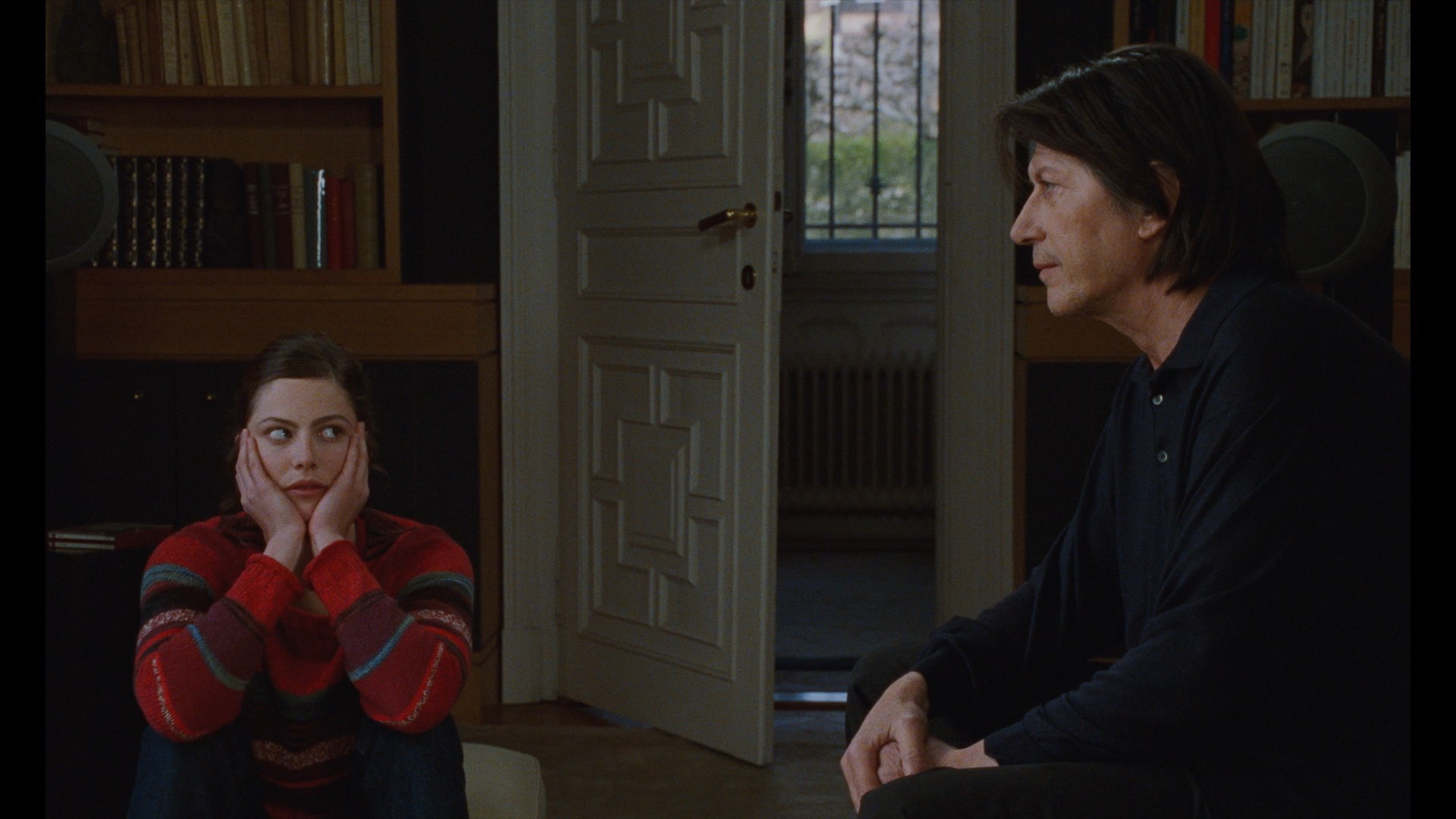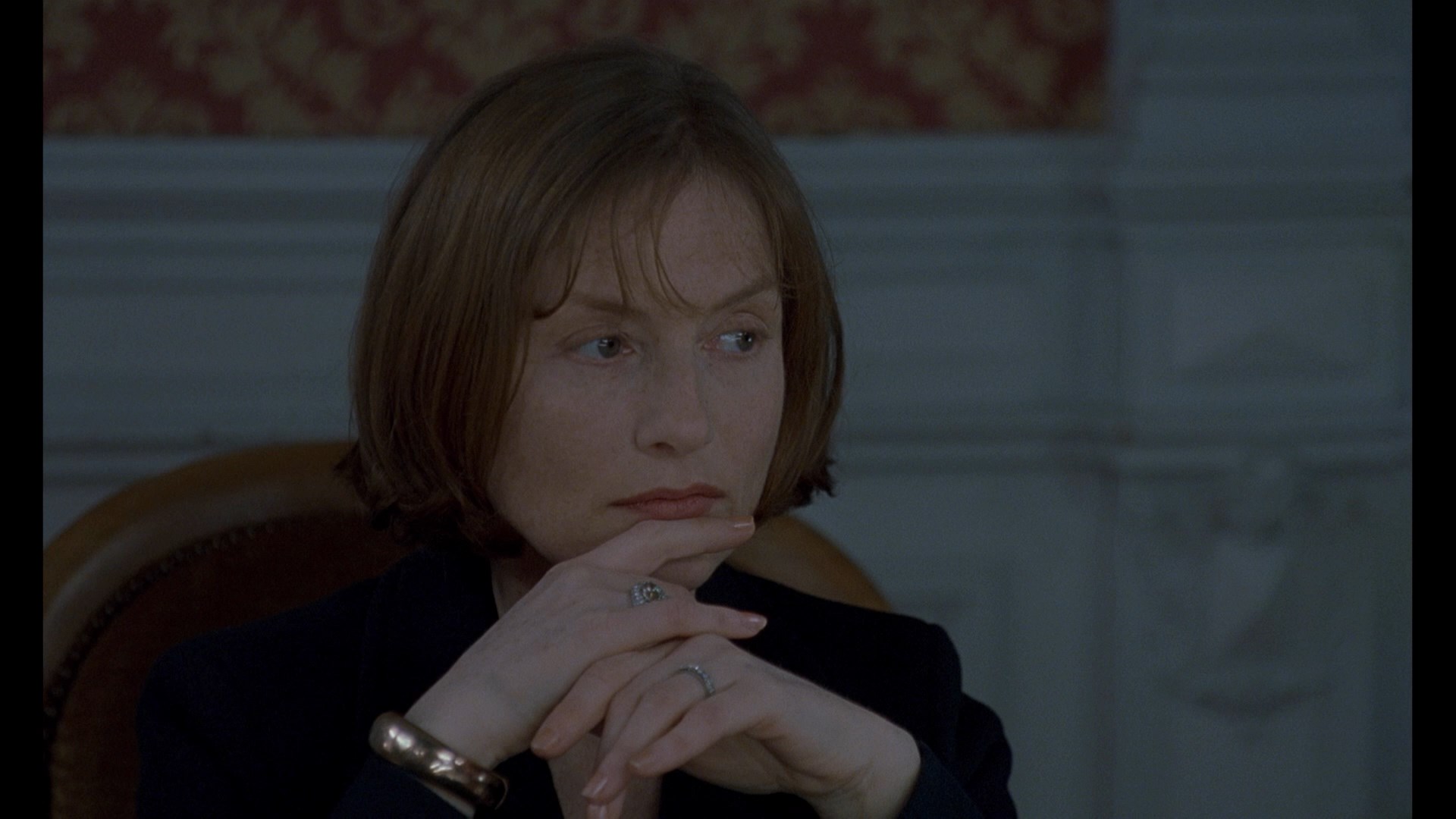 for the chat track if nothing else. Here the Arrow Blu-ray features a new 4K master that turns out to be a massive improvement in every possible way, delivering the best presentation of either Chabrol set and finally nailing the original theatrical appearance of the film. It's a real beauty. Justine Smith provides a really interesting new commentary that takes a different approach from the others in the set, sprinkling some background info here and there but coming off more like a conversation pointing out actor choices and interpretations along the way as well as her reading of how we're supposed to absorb the creative choices. It's a wise move as we've been inundated with Chabrol info by this point, coming off more like watching the film live with a perceptive film buff making you privy to her thought processes about the film. Very nicely done. Tafoya returns for "When I Pervert Good..." (11m15s), a short but worthwhile analysis of this film as an exemplar of Chabrol's approach as a grand master in the last decade of his career with his family members regularly involved as well. Then you get an archival Magny intro (3m11s), Chabrol scene commentaries (43m48s), the archival Huppert DVD interview (7m6s) about Chabrol's love of paradoxes, a funny archival interview with Dutronc (32m2s) puffing on the biggest cigar you've ever seen while sitting at the piano, the vintage making-of featurette (26m5s), a screen test for Anna Mouglalis (10m33s), the French trailer, and an image gallery.
