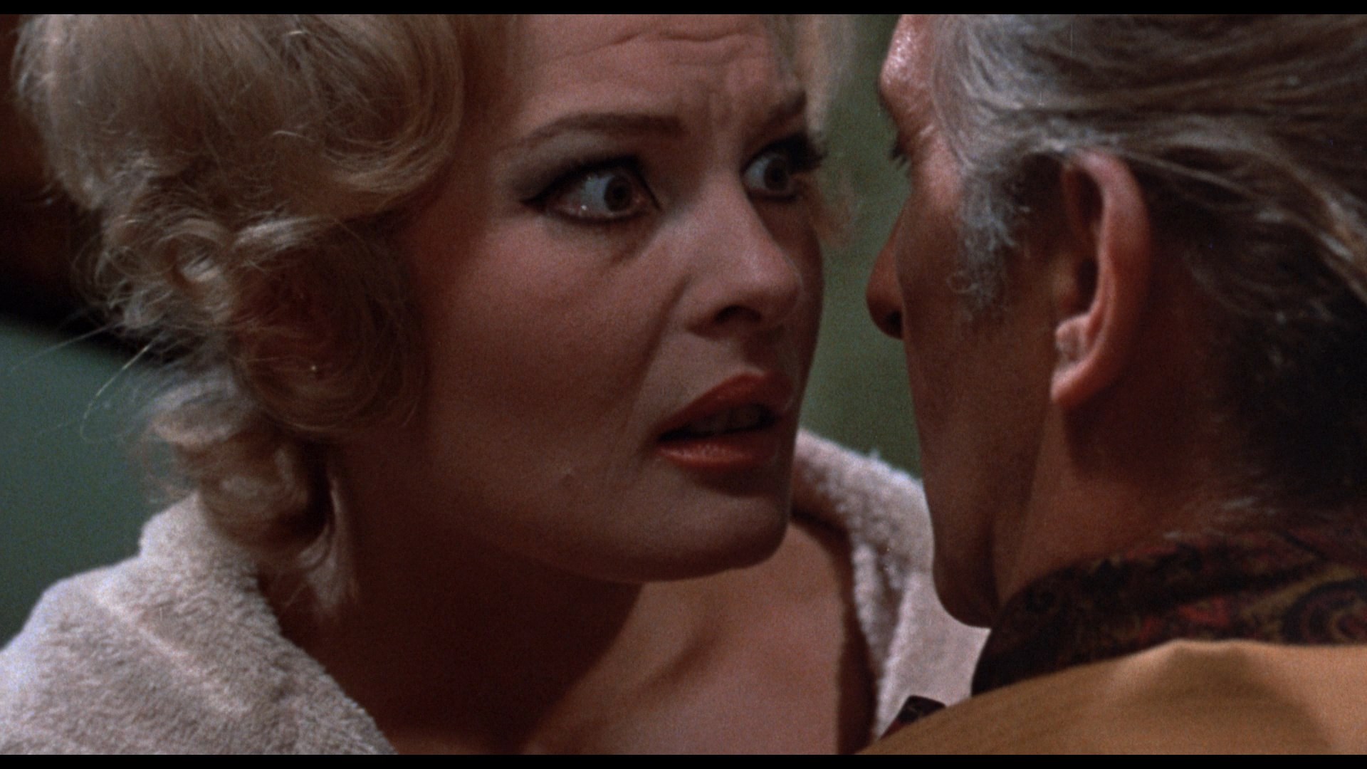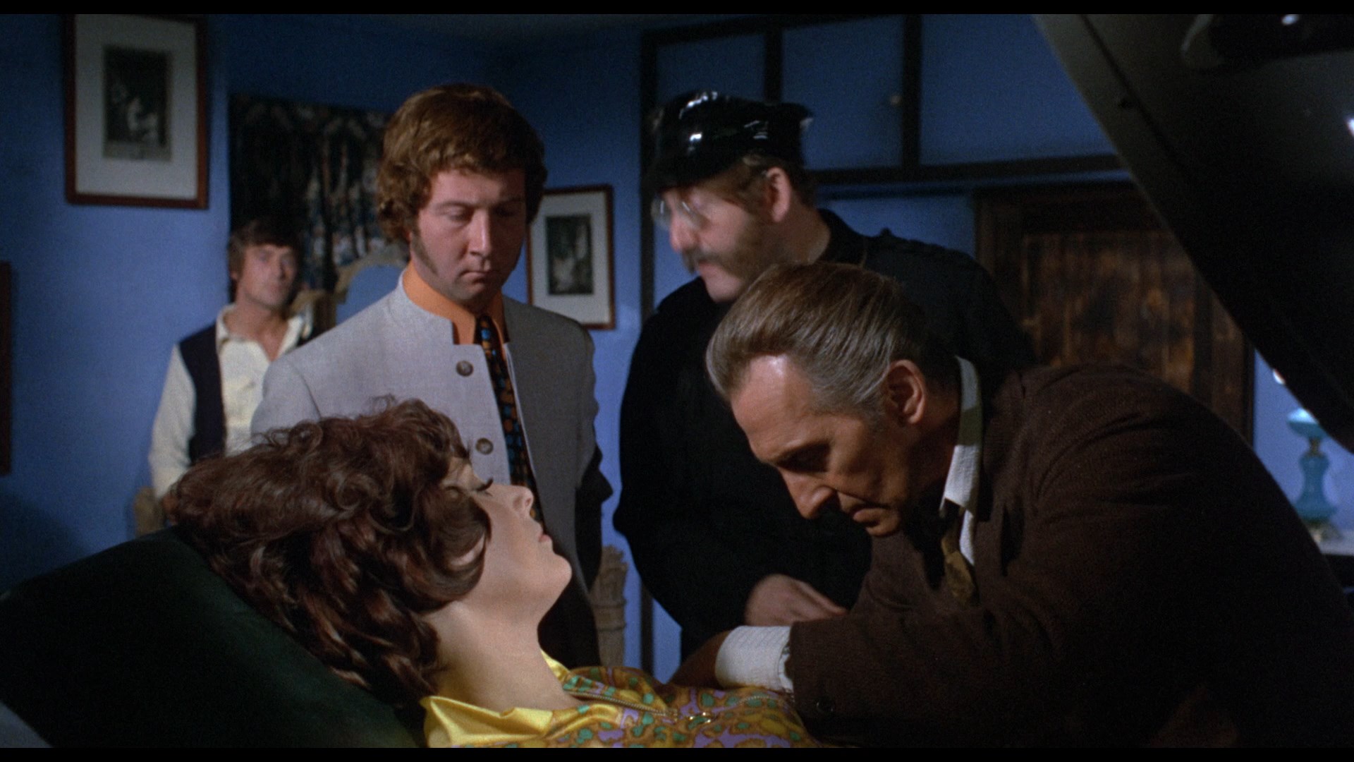 For reasons never really made clear, Corruption was extremely elusive on home video and never earned an American release on VHS. However, Sony did strike beautiful new prints of the general release cut for repertory screenings in the early '00s, and a fine version mastered from that source turned up once on Turner Classic Movies and a very brief DVD release in Portugal. However, anyone interested in the stronger alternate variant had to make do with cruddy bootleg copies taken from a muddy French SECAM VHS, at least until Grindhouse Releasing stepped in with its very surprising 2013 special edition, the answer to many a horror fan's prayers. Most importantly, the Blu-ray/DVD combo release from Grindhouse contains both the U.S. version and the more explicit French one, separately encoded and both looking excellent. The quality is comparable to the aforementioned new Corruptionprints with blazing colors in the model party scene and fine detail throughout; if you're familiar with the impressive presentation of other Sony catalog titles, this is cut from the same fine cloth. CorruptionIt's worth pointing out that these are completely different edits of the film, with the more graphic one actually running shorter despite the rougher hooker murder and a handful of other brief violent extensions. The DTS-HD mono audio sounds terrific as well, and an isolated music and effects track is included along with an enjoyable audio commentary featuring English Gothic author Jonathan Rigby and Cushing biographer David Miller. They tackle everything from the real state of surgical lasers at the time to the credits of everyone involved, with an understandable focus on Cushing's life and career weaving throughout (including his research methods and insistence on holding scalpels correctly). They also chat about the rare novelization of the film, including its amusing misspelling of said laser and dramatic expansion of several characters.