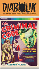 film for young director Howard Hawks at the dawn of cinema's sound era, The Criminal Code set the template for the filmmaker's trademark tough, dovetailing dialogue style as well as the prison dramas that would continue to pour out for decades to come. Based on a successful 1929 Broadway play by Pulitzer Prize winner Martin Flavin (inspired by his real-life observational experiences at San Quentin), the film would be remade twice in English by Columbia (with this as the only Pre-Code one), plus multiple times for radio and a pair of now-lost, foreign-language versions. Today the film is most significant to horror fans for a major cast member retained from the stage production, future genre icon Boris Karloff, whose scene-stealing performance here may have been a vital factor in his being cast in his most famous role in Frankenstein.