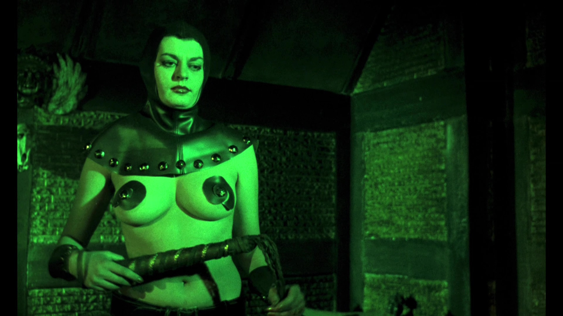 Despite its cast, the film did only middling business and was extremely difficult to see well into the 1980s, with a VHS release from HBO Video almost impossible to come by without some heavy hunting. Once the film passed over into the Orion library it popped up completely uncut on laserdisc from Image in a double bill with The Haunted Palace, and like many of the inherited Orion AIP titles, it sported an entirely new soundtrack composed for synthesizer by Kendall Schmidt (who also did the same duties on Planet of the Vampires, Journey to the Seventh Planet, Scream and Scream Again, Witchfinder General, and many others). That was the last time it saw an official home video release for decades, with a British DVD finally popping up in 2005 from Simply Media containing an anamorphic transfer with the original orchestral Peter Knight score (which is fine but no great shakes) but suffering from significant censor cuts to all of the nudity. That disc contains the trailer, a 24-minute Christopher Lee chat about working with Karloff, and a stills and poster gallery.