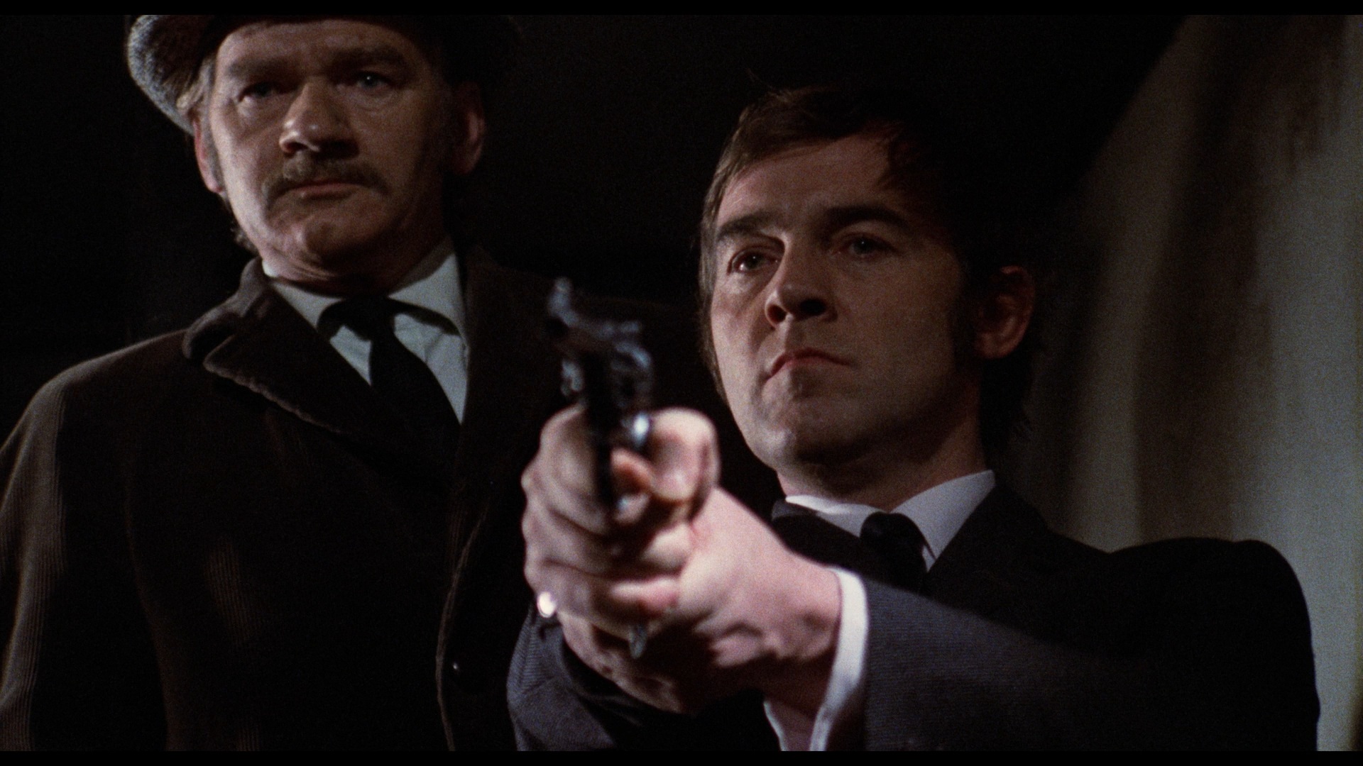 Booth and Henson have an endearing rapport even if the latter is photographed in a strange unflattering way through most of the film. The Windsor locations and sunny atmosphere make it visually pleasant to sit through, but if you're looking for whiplash shocks here, keep your expectations in check. Some not terribly great DVD and VHS releases of this have floated around with zero fanfare over the years, but the Vinegar Syndrome release looks gorgeous with an immaculate presentation from a 4K scan of the 35mm original camera negative; the DTS-HD MA 2.0 English mono track also sounds pristine and features SDH subtitles. Here Newman teams up with Barry Forshaw for an audio commentary pointing out pertinent credits from the cast and crew, dissecting the various subgenre comparisons this has gotten over the years, pointing out the major Windsor locations, singing out a fleeting early appearance by John Rhys-Davies, and exploring some other thrillers employing similar plot devices including a relevant one from Brian Clemens' Thriller.