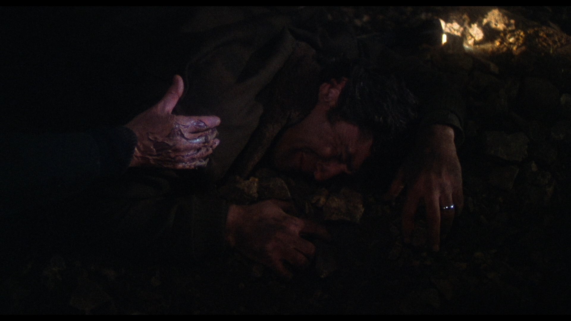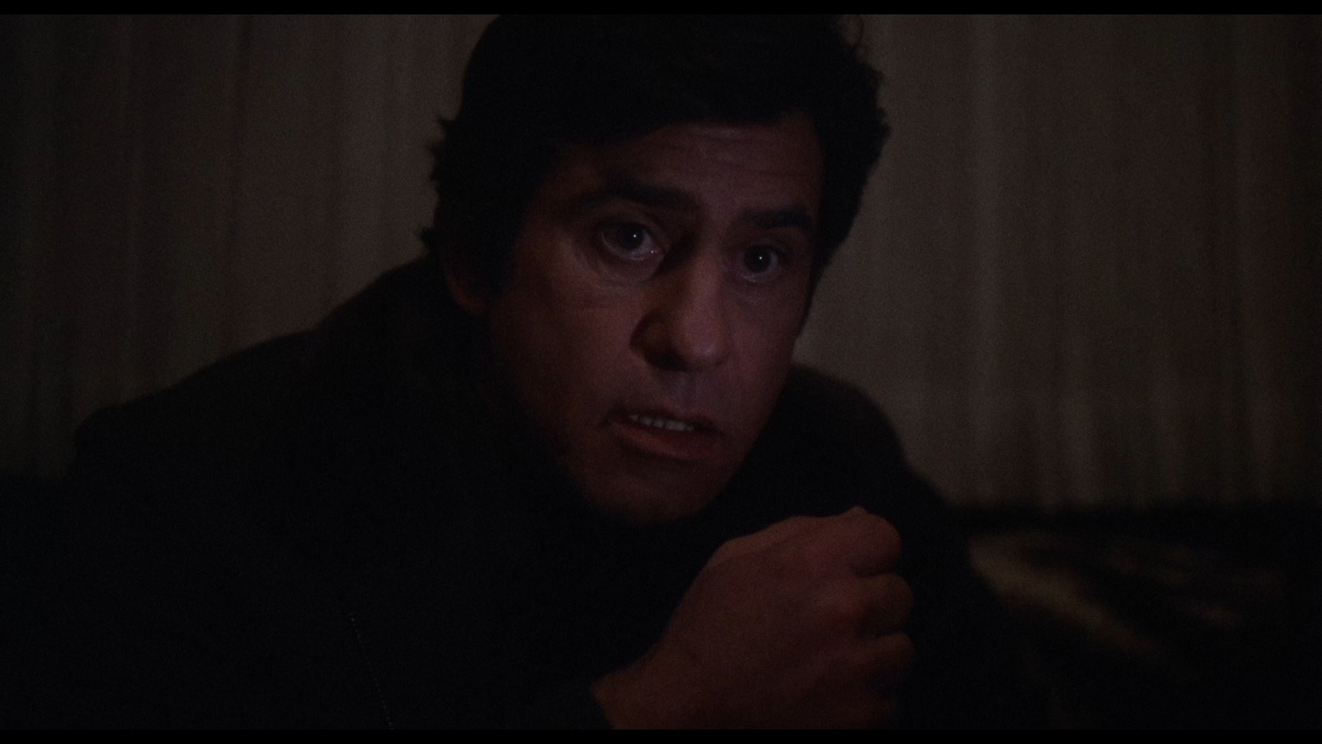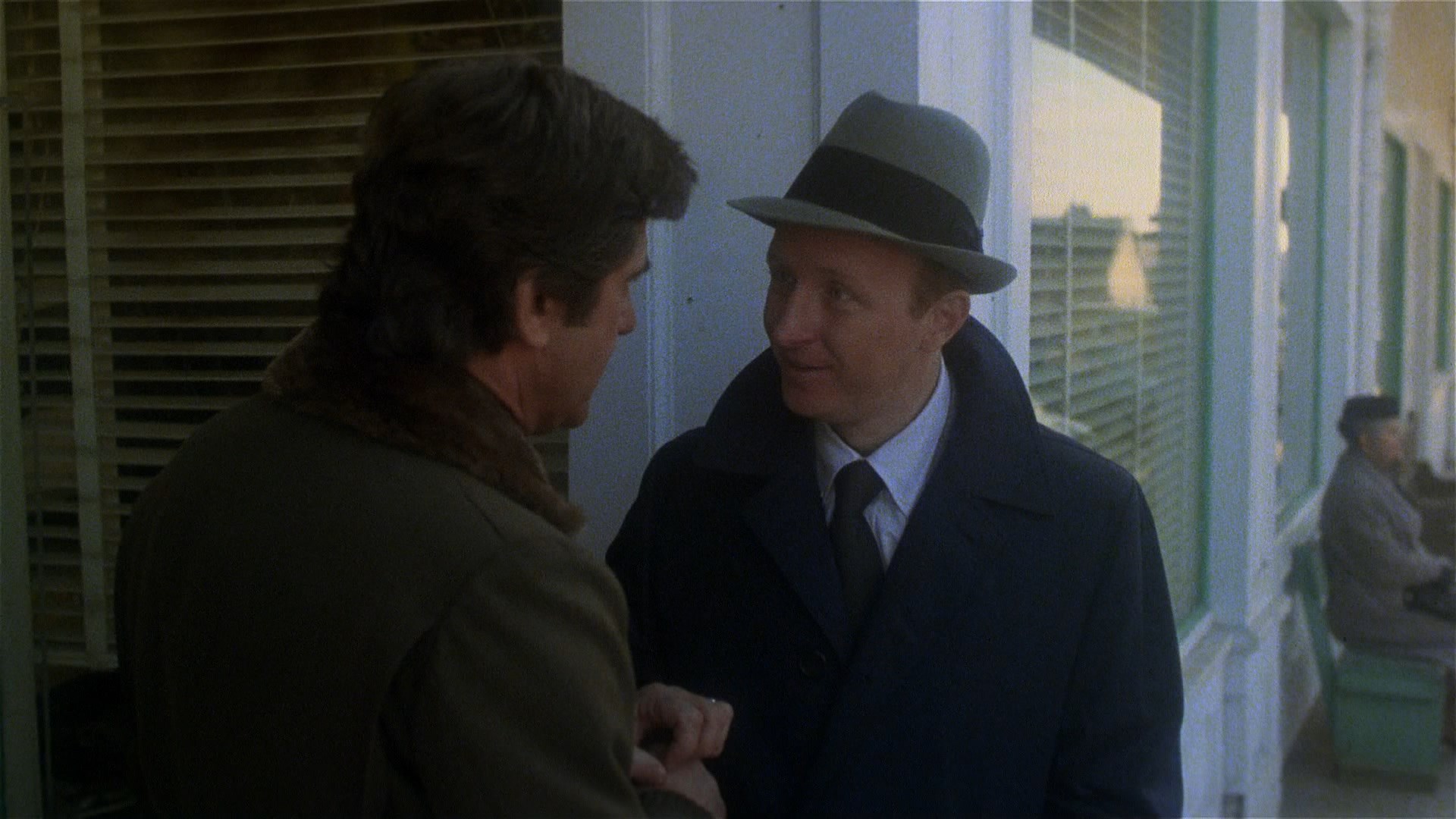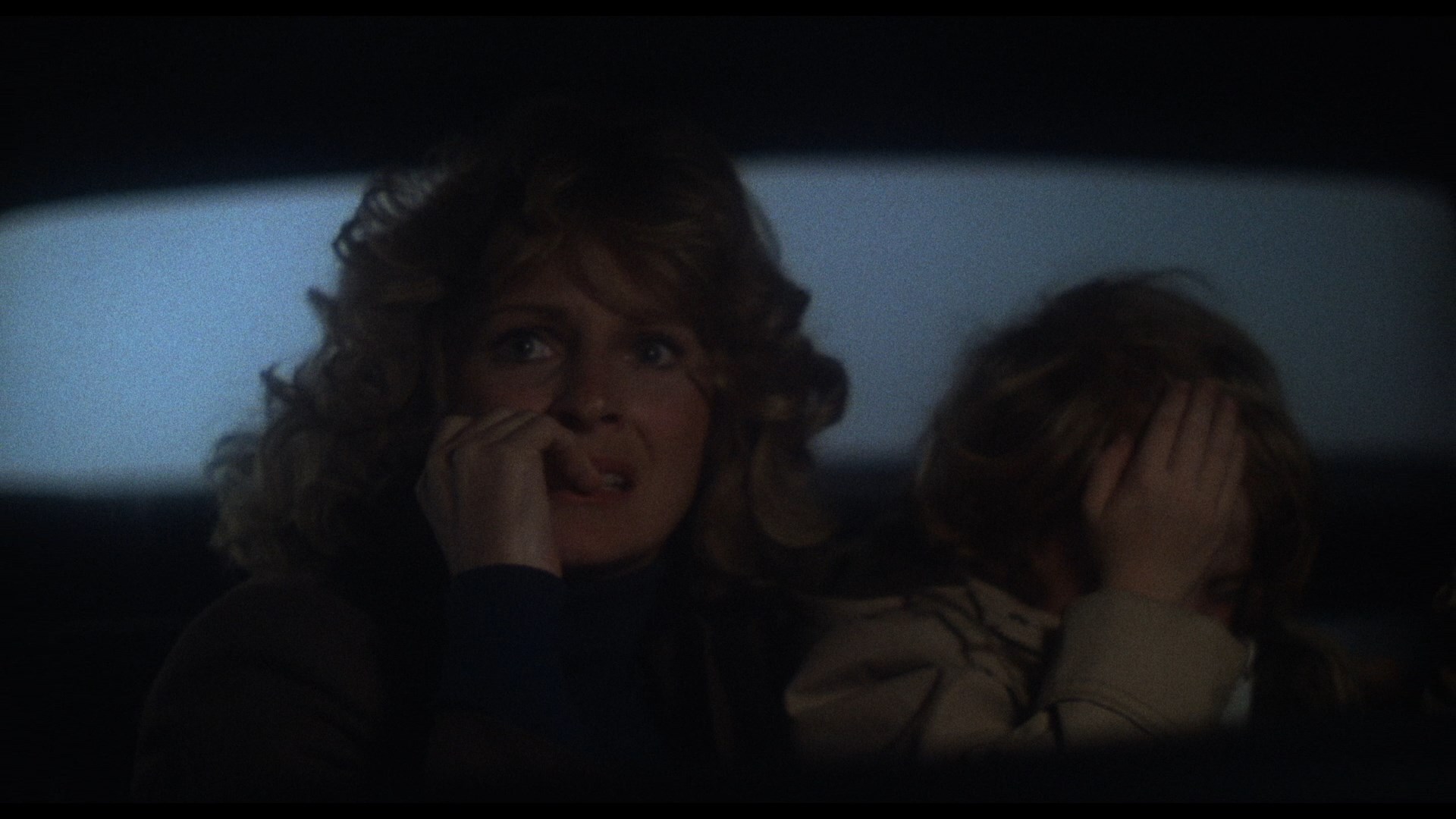 In 2021, Blue Underground finally brought the film to UHD as a three-disc edition (available with three different slipcover designs including a great lenticular version of the needle scene) also containing a remastered Blu-ray and, finally available for the first time ever in any format, Renzetti's magnificent score on CD in its entirety. The new scan is listed as a new 4K 16-bit scan from the 35mm IP, so of course the big question is, how does it look? In a word, spectacular, especially if you're familiar with the challenges posed by this film. The most obvious differences here are more image info visible in the frame and a more balanced color scheme that's less green than before; in motion the grain is also handled wonderfully here with a fine, natural texture that shows just how far technology has come in just over a decade. The UHD sweetens the deal not only with higher resolution over the Blu-ray but with the benefit of Dolby Vision HDR, which brings out even more nuances in the colors and really helps those darker night scenes in particular sing like never before. Just bear in mind that this is a film that makes frequent use of diffusion effects and even filters over the camera in some scenes, and the results here are very satisfying indeed. (Frame grabs in the body of this review are from the 2021 Blu-ray; comparison grabs between the two Blu-rays can be seen at the bottom.) Audio is