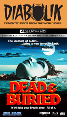 Written and performed with a quirky style hovering somewhere between macabre comedy and utter despair, Dead and Buried cannily uses its TV-friendly cast to gradually undermine viewers' expectations. The film has earned a reputation for its graphic gore and came under fire in the U.K., though Stan Winston's gruesome effects actually occupy a relatively small amount of screen time. In fact, the most memorable violent effect involves a simple syringe and no blood whatsoever. Apart from a prolonged and unfortunately fake-looking bit involving acid and one character's nasal cavities, the violence never overwhelms the compelling storyline which gradually tightens to a delirious final act. Genre fans in particular should look for an early role by Freddy Krueger himself, Robert Englund, and a haunting music score by Joe Renzetti, who later went on to Child's Play and several Frank Henenlotter films. Oddly enough, this film also marked a directorial comeback for Gary Sherman, who had vanished for ten years after the magnificent British shocker, Death Line (a.k.a. Raw Meat). Unfortunately his career was hit and miss after that, highlighted later by the memorable drive-in favorites Vice Squad and Wanted: Dead or Alive and 1989's criminally
