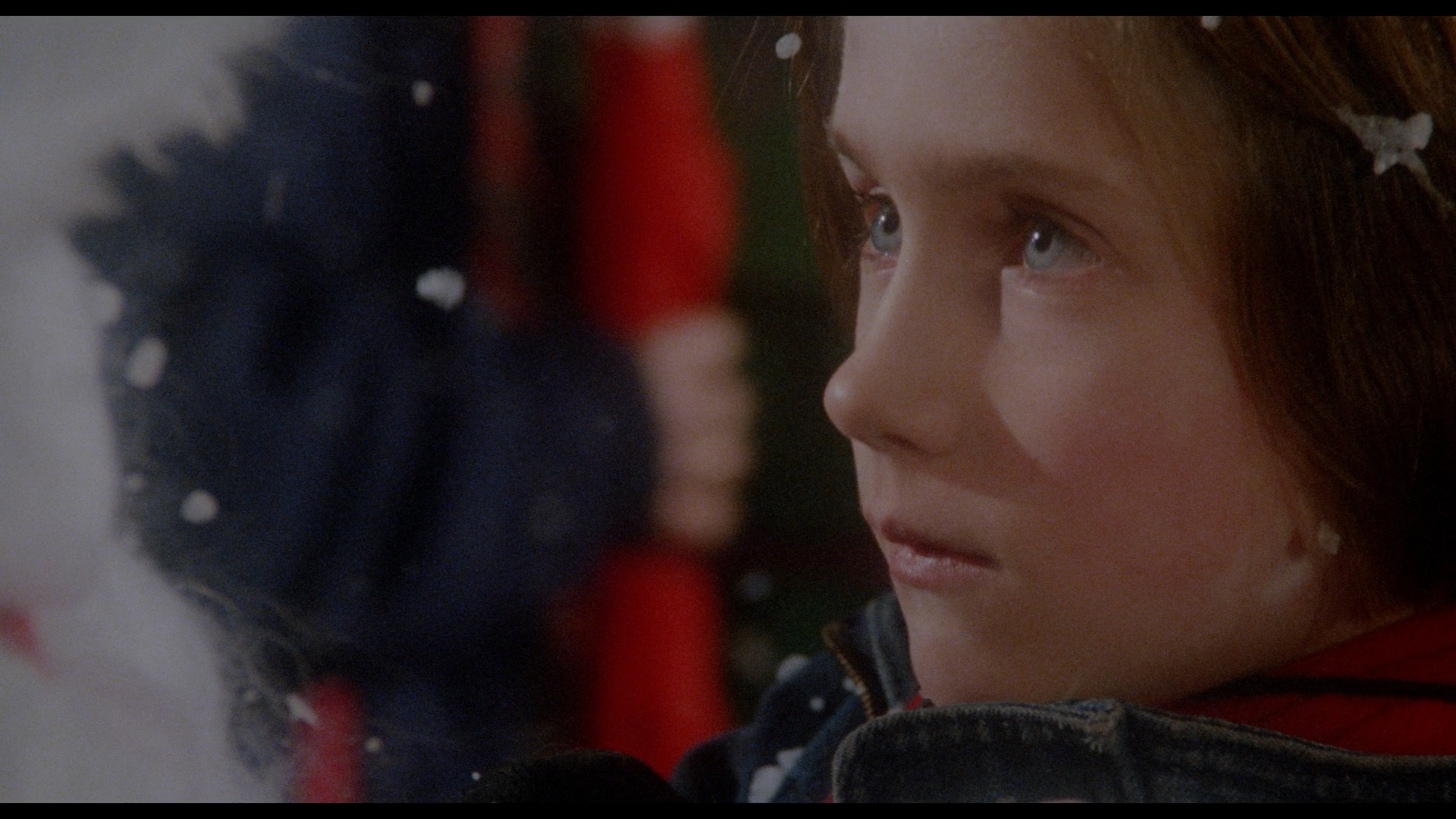In 2020, Vinegar Syndrome brought the film to UHD and Blu-ray as a combo pack just in time for the holidays. The 4K-sourced transfer appears to be from the same scan, though on the Blu-ray it's been given a bit more color correction and has punchier, more vibrant reds and browns in particular. The UHD benefits significantly from the addition of HDR here and looks gorgeous in motion with a much wider spectrum of color on display that makes the heavy reliance on blue lighting from over half the film easier to appreciate; blacks are also deeper and richer throughout, and the white snow really pops whenever it flurries across the screen. The DTS-HD MA French 2.0 track sounds excellent and decodes beautifully to surround with lots of multi-channel activity throughout. The specs list "newly translated English SDH subtitles," though thankfully that's not correct as these are standard English subs without SDH designations (light yellow on the Blu-ray, white on the UHD). The UHD is bare bones and devotes all of its space to the film itself, a wise choice given how much breathing room it gets; the Blu-ray features a slate of extras essentially mirroring what's on the Camera Obscura release, albeit running at proper speed now so the running times vary a bit. (For example, "Jouets Interdits," or "Forbidden Games" as it's translated here, now runs 88m46s.) The production featurette is now called "Simon Says Roll Sound," FYI, in case you're trying to compare.
