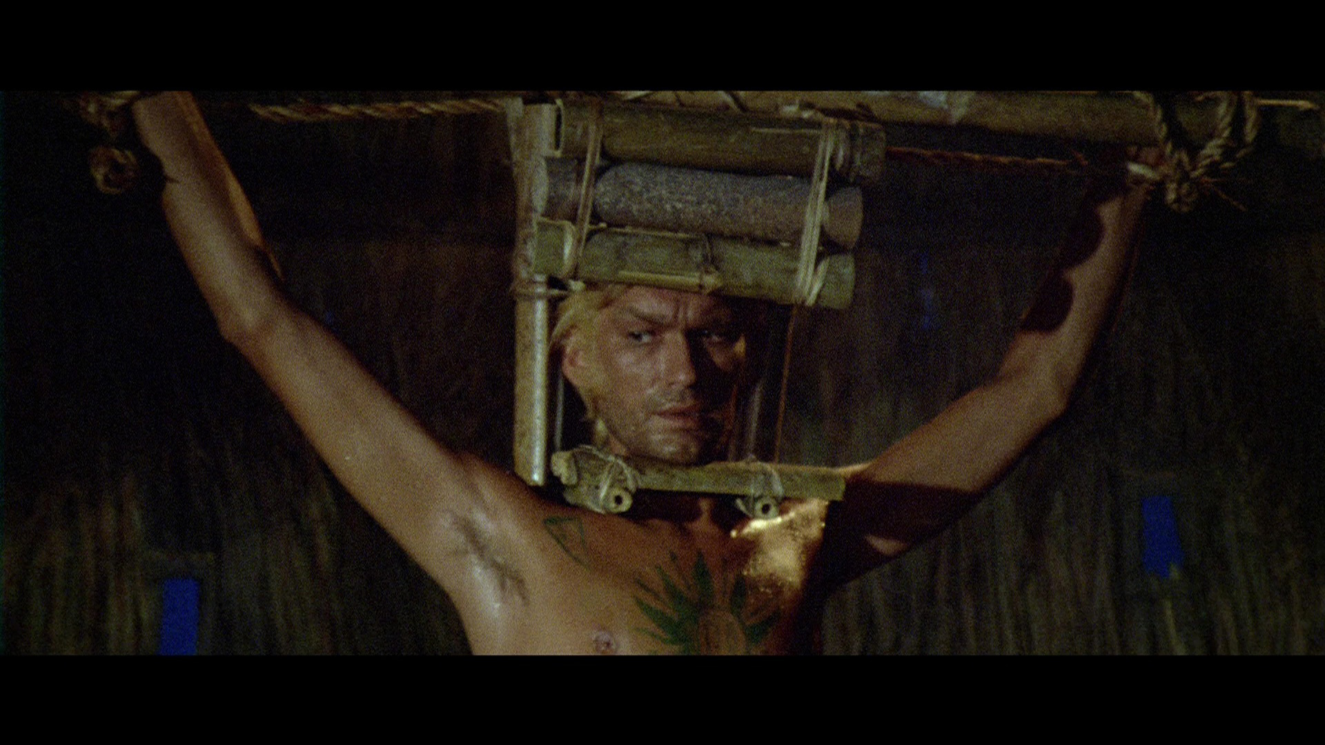 English language track, with extras consisting of the trailer, a photo gallery, and a 10-minute Lenzi interview about being hired for this "anthropological" project originally suggested by an idea by Emmanuelle Arsan(!). In the UK it encountered far more trouble since its inception, denied a BBFC certificate for its animal killing footage and eventually ending up branded a video nasty in the '80s. In 2016, 88 Films brought the film to UK Blu-ray with all the controversy you would expect. Despite best efforts, the film's animal violence still had to be trimmed; however, it accounts for less of the running time than some of the later films (losing about 2 1/2 minutes), so at least the damage is fairly minimal. Oddly, the most upsetting scene involving a monkey is left intact... go figure. The transfer looks much, much more detailed than past DVDs, and while the color schemes still have that bright, lurid quality, they're better resolved here without any bleeding or smearing (especially those once problematic J&B bottle caps and red blood). It's still pretty gritty looking and grainy, which may be part of the original design. Audio options include English and Italian LPCM mono tracks, both pristine, with optional English subtitles (not dubtitles). The English is the better default one if you're seeing the film for the first time; it's dubbed either way, but the English track is the one designed for the film to make it easier to market overseas. On the third track, Calum Waddell continues his exploration of Italian cannibal films after contributions on past releases with an audio commentary that goes in some very unexpected directions. He starts off with a useful primer on the various Thai locations seen throughout the film and chats about the country's unique status in the region as one never colonialized (sort of), and there's a lot of info about the cast, crew, and nature of Italian productions at the time. There's a lengthy and sometimes puzzling tangent around the half-hour mark involving Hitler, Marxism, communism, and reactions to "trolls" about his past disparaging remarks about Cannibal Holocaust, but he does get back on course to the film again for smooth sailing after that point.