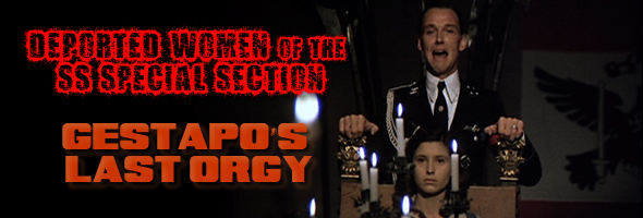 Both releases include the same featurette, "A Brief History of Sadiconazista," in which film historian Marcus Stiglegger (who's penned two books on the subject) takes a 36-minute tour through the disreputable subgenre's history from early propaganda sexualization through literary and filmic milestones like House of Dolls, Ilsa - She-Wolf of the SS, and many more. He also dispels the cinematic myth of concentration camp brothels for officers, perhaps the most interesting moment of the piece. Gestapo's Last Orgy adds on its (insane) theatrical trailer, while Deported Women has a couple of additional featurettes. The late De Silvestro gets his due with the 29-minute "Camp Rino," a Freak-o-Rama production in which he covers virtually his entire career from start to finish and offers his own thoughts on this film, including the necessity of shooting at an Italian castle and research to ensure all of the insignias and clothing colors were accurate. Finally, "What Does John Steiner Think?" features the Eurocult staple in his Beverly Hills real estate office offering 9 minutes of amusing memories about this film and his time in the Italian cinematic trenches; incidentally, this is comprised of outtakes from the same interview yours truly conducted several years ago for the special edition of Caligula, so watch both interviews back to back for maximum effect.