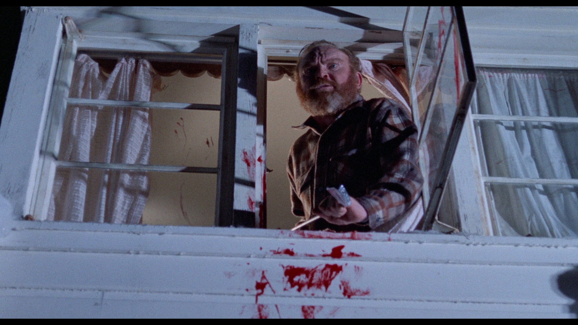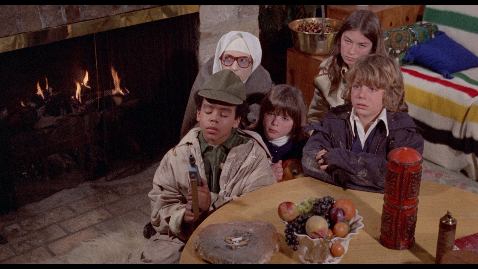 from the 35mm camera negative, it improves on the already excellent prior Blu-ray with better grain structure and more image info in the frame; the UHD also has a rich and frequently eye-popping range of colors thanks to HDR. Again this bears the Horrible House title on the source, not surprisingly. The DTS-HD MA 2.0 English mono track sounds pristine and features optional English SDH, and the prior commentary has been ported over here. You also get a brand new commentary by the great slasherholics from The Hysteria Continues!, who put this in context with other '70s and '80s killer kid movies and cover its odd theatrical and home video release history as well as background on all the principals. The previous featurette turns up here as well along with the trailer, bonus interview snippets, and alternate Devil Times Five title card. The three new featurettes here kick off with "Puppeteering" (20m11s) with second assistant director Walter Dominguez about some of the films he worked on before this (like The Andromeda Strain), meeting his future wife on this film, and the various backstage chaos that almost made him walk. In "Daddy’s Home" (8m49s), Bruce Wank, son of executive producer Jordan M. Wank, starts with a Tarantino plug for the film and looks back at his dad's career in Hollywood starting as an entertainment attorney and doing an earlier film with MacGregor that led to this turbulent one. Finally in "Holiday from Hell" (26m16s), regional horror expert extraordinaire Stephen Thrower provides plenty of detail about MacGregor's background (some of it very dubious and including some bit parts in Hollywood movies), including his work on Brotherhood of Satan and the path leading to this film and some of its more amusing continuity curiosities. Vinegar Syndrome Blu-ray