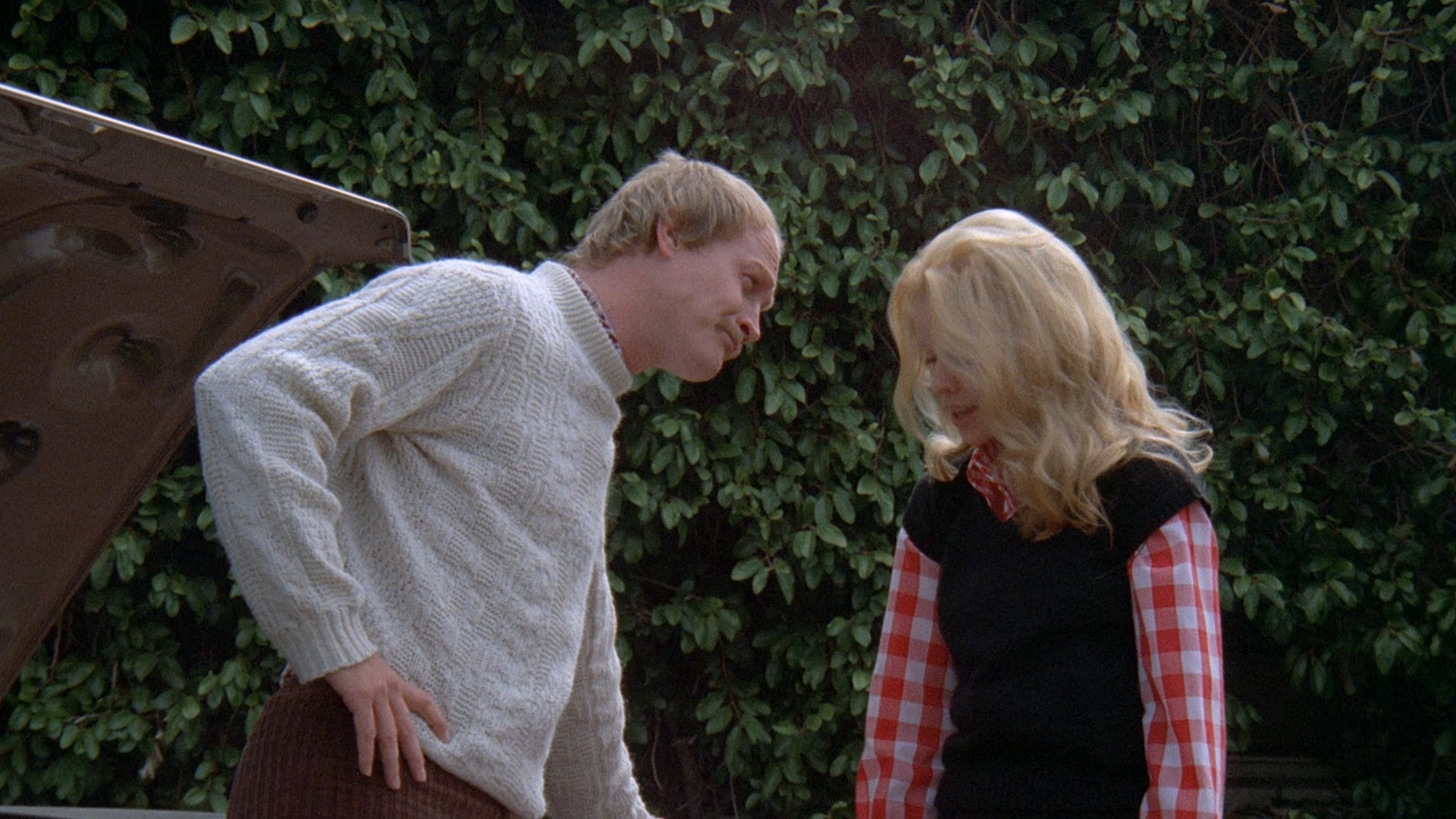 filled and quickly paced. Lyn also joins in and offers her own perspective as a child performer drawn in to a most unusual project. All three are joined by Tierre Turner for the other big extra, a 22-minute featurette that offers even more stories about the shoestring filming in a less-than-optimum setting with enough continuity problems to fuel months of nightmares. Other extras include the theatrical trailer, some additional Easter eggs involving the interviewees, an alternate opening title sequence, a promotional gallery, and vintage trailers for other Code Red releases.