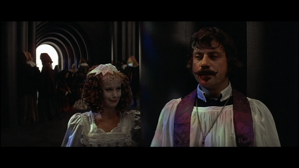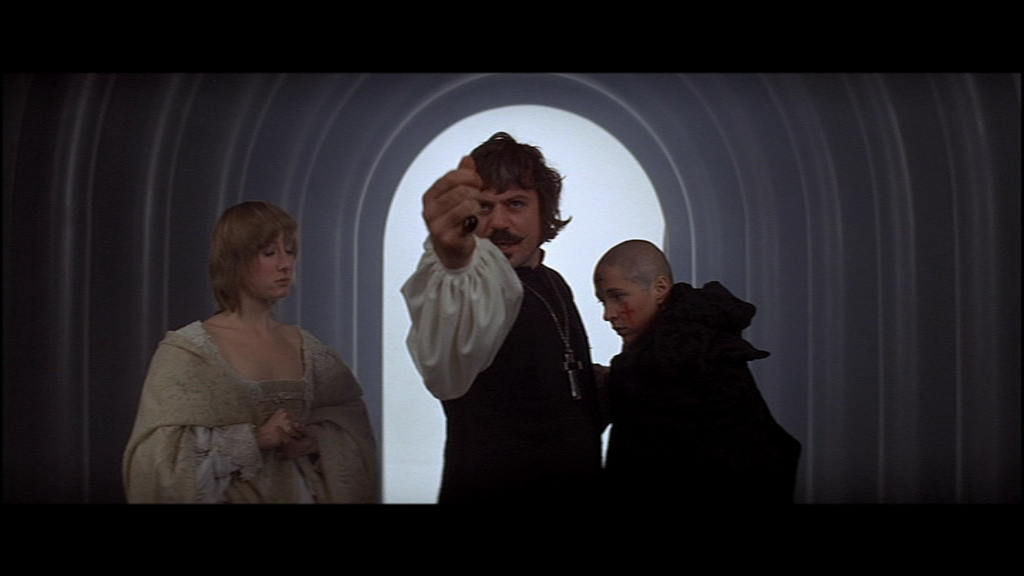 Scream Again and the assassin Roger Moore kicks off a cliff in For Your Eyes Only) steals all of his scenes as a very dangerous religious fanatic. David Watkin's beautiful scope cinematography, Peter Maxwell Davies' deliberately abrasive and abstract score, and Shirley Russell's striking costumes are just a few more of the perfect elements here, creating a whole even greater than the sum of its already formidable parts.