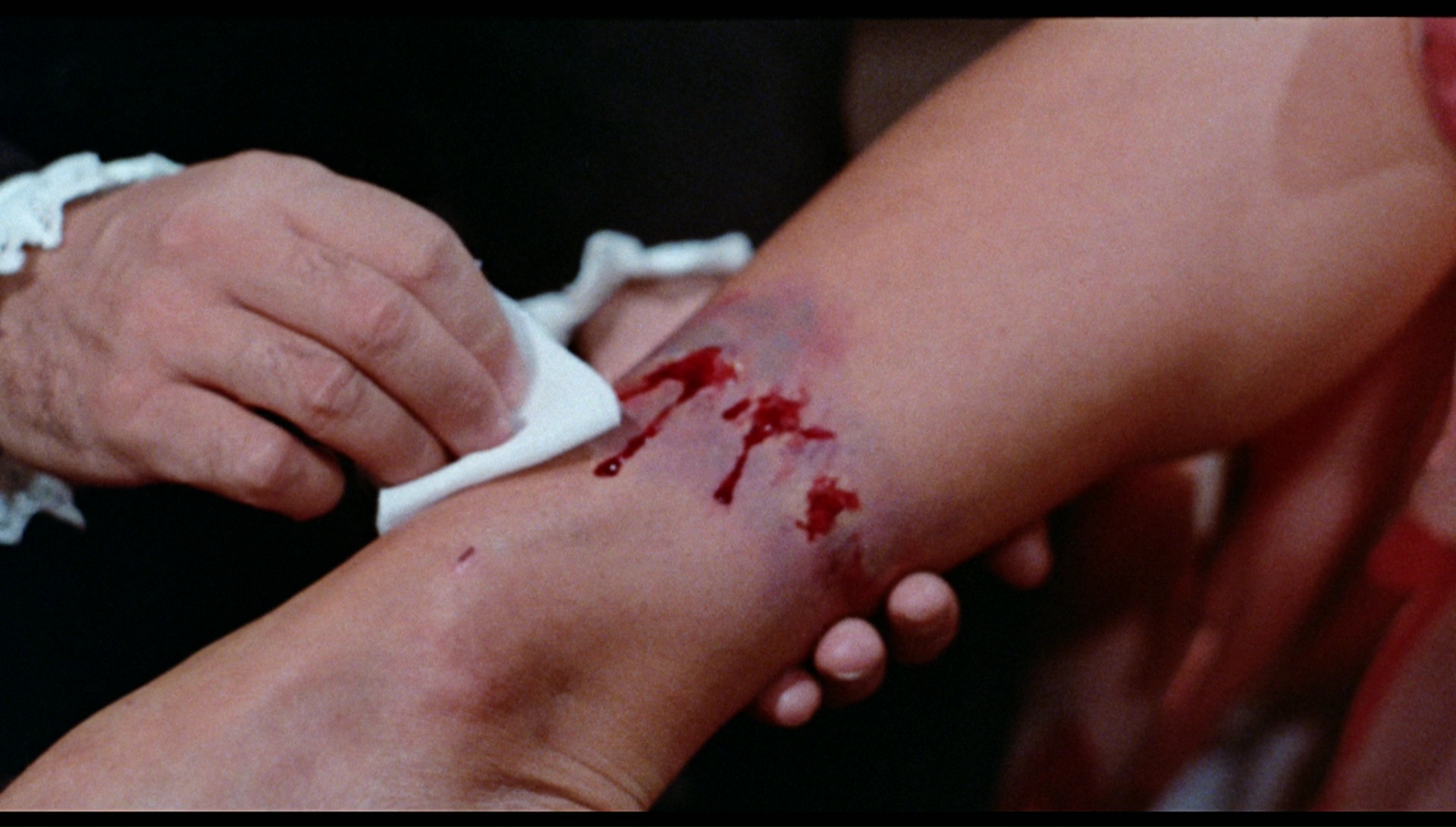 As for the film itself, it looks pretty spectacular with a fresh HD scan from the interpositive in possession of the American rights holder, representing the unclothed cut with all of the bare breasts and bloodshed intact. Apart from the opening credits (which involve opticals on top of opticals), the quality is excellent and a huge step up from any past release, looking pin sharp except for scenes where the cameraman seems to have slight focus issues. The English audio is default option (with English SDH subtitles provided), and it sounds superb with great dynamic range and much more healthy bass than past versions would have indicated. The Spanish audio is also included from the only available source (a prior home video release) with significantly lesser quality, but it's great to have; optional subtitles directly translated from the Spanish dialogue are provided. It's a toss up as to which version is more effective; both are dubbed, with most of the actors speaking Spanish (some with their real voices) but a few, most notably Politoff, clearly speaking English with the voice actor matching her lip movements. Neither one sounds terribly organic given how the audio was produced, so try 'em both and see which one you prefer. Either way, it's an absolutely vital release for any self-respecting Euro horror fan.
