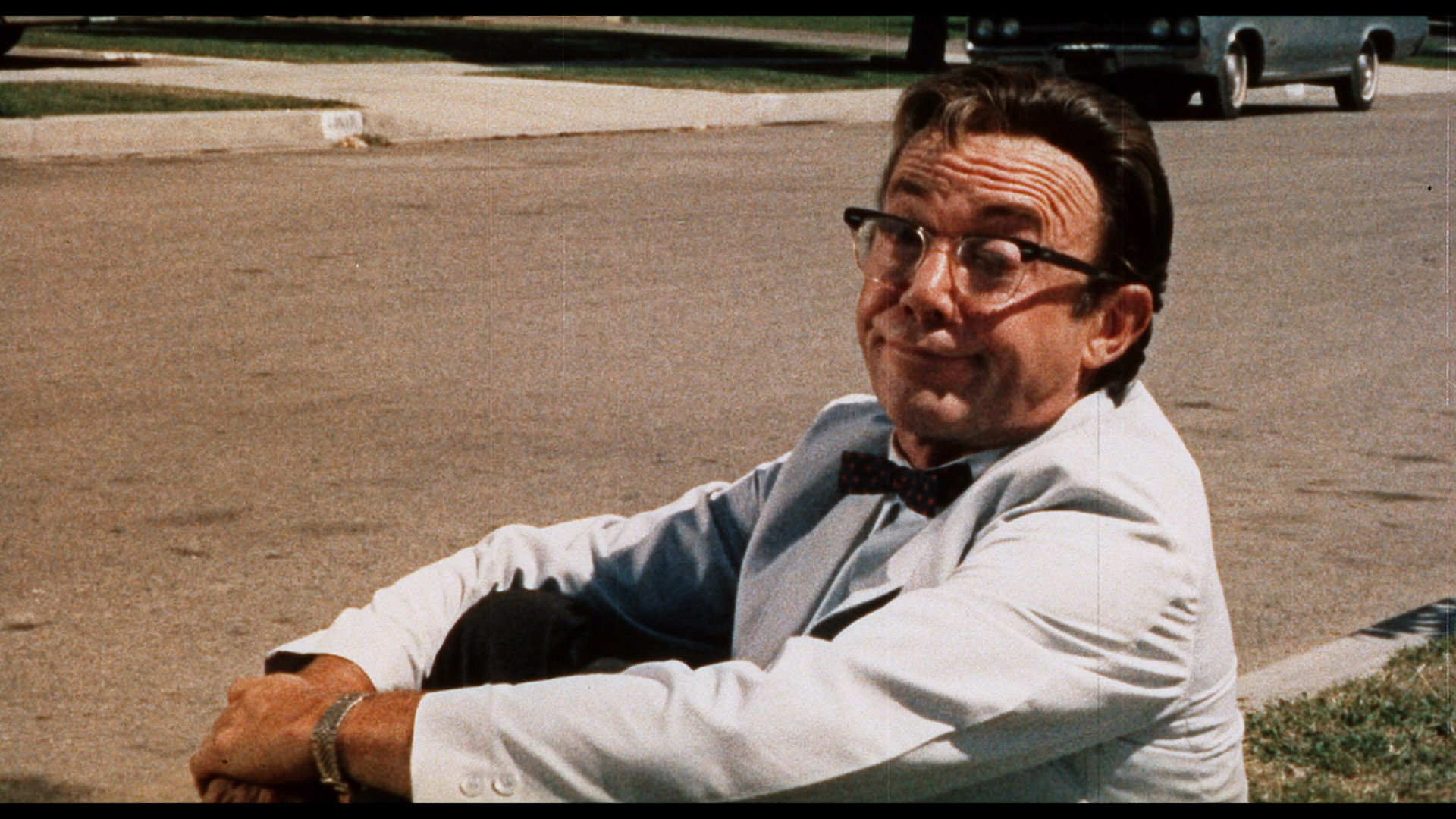 Also included here is an entire bonus feature movie, and it's a doozy: 1965's Tales of a Salesman (63m53s), preserved from the only known 35mm Technicolor print in existence. Presented here framed at 1.85:1 and looking gorgeous compared to the old Something Weird VHS and streaming version, it's a wild, psychedelic supernatural nudie that's actually worth the price of the disc itself. A spectral "salesman's poltergeist" from the netherworld narrates this saga about Herman (David Reed), a Southern salesman urged by his off-screen wife to go out and get 'em on his first day on a new job. Enter the helpful poltergeist who starts guiding him around potential brush customers, all women with an aversion to clothing. A very entertaining and surreal sex comedy, this one takes a crazed left turn in the last 20 minutes when our protagonist gets dumped in a fog-filled limbo where he encounters a Jigoku-style underworld of vampire fangs, monster vacuums, an imposing judge, balloons, and lots of women doing burlesque routines. The source print has some obvious scratches, but the colors looks stunning and the film overall will be a real surprise for anyone who passed it over before due to the bland title. This was the sole directorial effort for Don Russell, who worked as an AD on several '60s Ray Dennis Steckler films, and it's a shame he never felt compelled to do this again. Finally the disc wraps up with a reel of "trailers from Dracula’s dirty old cave" (12m4s) including Night of the Witches / Dr. Frankenstein on Campus, Witchcraft, The Vampire and the Ballerina, and Terror at Orgy Castle.