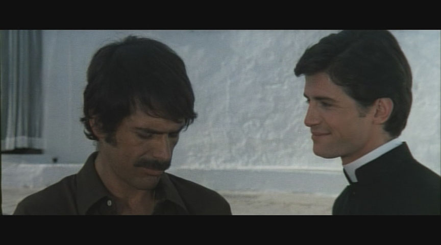 for the Italian track, while English SDH ones can be played for the English one; note that both are locked to be switched on or off via the main or pop-up menus for their respective audio versions though and can't be switched on the fly. The film can also be played with a new audio commentary by So Deadly, So Perverse: 50 Years of Italian Giallo Films and Splintered Visions: Lucio Fulci and His Films author Troy Howarth, who ranks this among his favorite films and does a skillful job of laying out details about the film's shooting locations, complex attitudes about Catholicism, cast and crew backgrounds, and the animosity between two of the actors that turned physical during the finale.