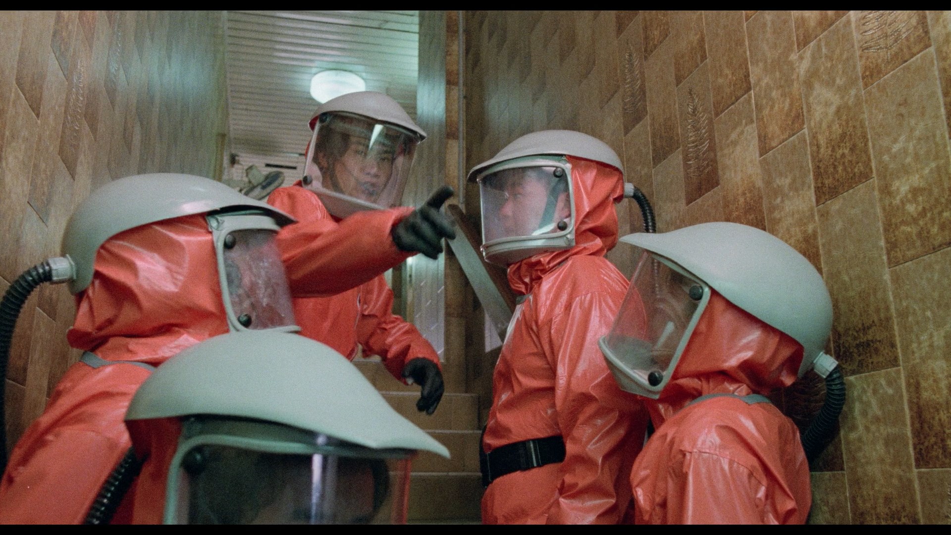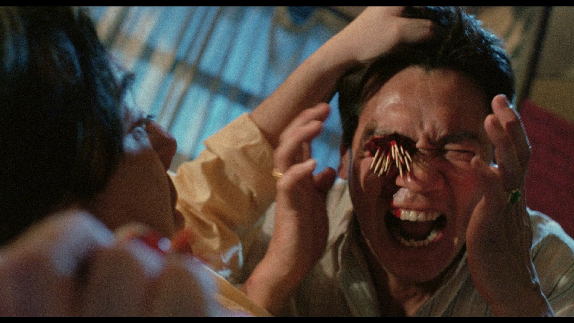 rating system, a rebuttal to the theory that Ebola Syndrome as a spoof cat Category III films, his working relationship with director of photography Puccini Yu, his approach to action filmmaking including his triad films, and more. Yau also pops up for a brief intro to the film (35s) and an amusing "Cantonese with Dr. Yau" (12m4s) discussing the sometimes intricate (and occasionally lewd) challenges in translating the language to English subtitles, pointing out how some terms can even differ from one generation to the next. But that's not all! The film also comes with an enthusiastic new audio commentary by film scholar Samm Deighan, who notes how the film is close to her heart as the first Category III film she ever saw and notes the importance of having the cut footage reinstated here. She also goes into her love of the director and star, her thoughts on the various kinds of Category III cinema and the nihilistic worldview depicted in films like this, the permutations of HK crime films, the class and racial perspectives in Yau's cinema, the frequent anti-cop bias in these films (concurrent with some of them having underworld financing), and her absolutely understandable favorite plot device in the film. All of these extras are present on the Blu-ray, while the UHD retains only the commentaries so the film can enjoy an extremely maxed-out bit rate. The package also comes with an insert booklet featuring a primer on Yau's cinema by Ariel Esteban Cayer and a 2021 roundtable discussion with Cheng Yu Shing, Honkaz Fung, William Yuen, and Andy Willis about this film, its poor box office performance at the time, and the overall state of Hong Kong cinema.