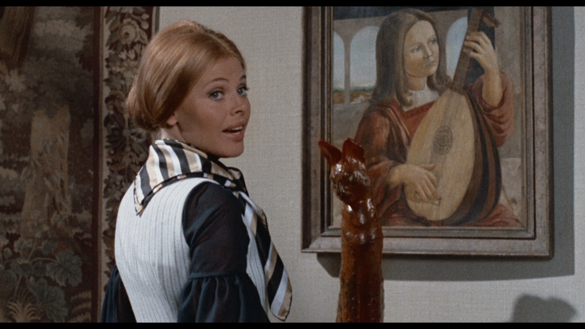 Originally released on VHS in the U.S. by HBO, Endless Night made the leap to DVD early in the format’s history from Anchor Bay along with several other Christie titles like Evil Under the Sun, Death on the Nile and The Mirror Crack’d. The anamorphic transfer was fine for the time and ended up being recycled for a number of reissues in Europe and the U.S. over the years, but a special edition didn’t arrive until the 2020 U.K. Blu-ray from Indicator. Image quality is very good and accurate to the source, a bit grainy and grubby in keeping with the look of the film stock (including those tangerine-style skin tones common t the late '60s and early '70s) but much clearer and more vibrant than prior DVDs; the DTS-HD MA English mono audio is also perfectly satisfying and true to the original recording. Optional English SDH subtitles are provided, and a second audio option is a British Entertainment History Project discussion with Gilliat from 1990. Conversing with Roy Fowler and Taffy Haines, he spins out a number of stories about his career starting off with anecdotes about his father and then bouncing through his most famous writing and directing adventures with Launder and otherwise. Also included is the John Player Lecture with Herrmann (52m28s) from 1972, with interviewer Ted Gilling asking him about the artistic necessity of film music, his use of leitmotifs in Citizen Kane and other work with Orson Welles,