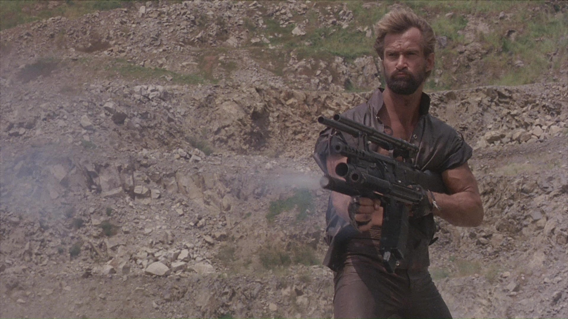 essentially an excuse for a non-stop barrage of action scenes, making this one of the most entertaining and ridiculous of the cheap post-apocalyptic cycle of its kind. Norton manages to acquit himself well trotting around the title weapon, though it isn't the most demanding role of a career that including several starring job opposite Cynthia Rothrock and, more recently, a turn as the Prime Imperator in Mad Max: Fury Road. Now a professional tarot card reader, Wahl manages to give that gun a run for its money in her eye-catching leather outfits; unfortunately this would turn out to be the penultimate feature film in a career that also includes such cable staples as Spring Break and C.O.D. Fans of Filipino exploitation will also enjoy supporting appearances by the great Vic Diaz (a mascot of the American/Filipino heyday) and the equally busy Ramon D'Salva, who also popped up in everything from The Hot Box to another Corman Filipino special, Demon of Paradise.