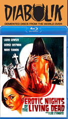 fully uncut and featured a full-on hardcore version of the hooker sequence. The rest of the film is technically softcore but still graphic, including a champagne cork-popping scene that can't fail to impress. A much softer, edited version was also prepped for general retailers who wouldn't handle adult material. The transfer was okay for the time, presented at 1.78:1 with a typically ridiculous English dubbed track and opening titles calling the film Sexy Nights of the Living Dead; extras include a newly-created trailer, an "Erotic Sunny Afternoons of the Living Dead" (27m19s) showing the film before its day-for-night color timing (the climax is pretty dark and supposed to take place in the dead of night), and an image gallery (4m27s) throwing together some very lo-res stills from this film and poor quality nudie shots of Gemser that look like they were yanked off the web.
