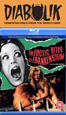 hear about its more outrageous highlights, such as a nude couple tied back to back and whipped by the monster over a spiked floor (a scene Franco repeated with less S&M but more explicitness in his revamped version of Countess Perverse). The film is indeed wild stuff, and when it became clear that there were two versions circulating around out there, confusion erupted over what people had seen and which one actually deserved the title of Erotic Rites of Frankenstein. The longer but tamer Spanish version (La maldición de Frankenstein) bowed on U.S. DVD in 2005 from Image Entertainment with English subtitles (as just The Rites of Frankenstein since there wasn't anything erotic left), plus the stronger naked version of the whipping scene added from an inferior VHS copy as an extra. The full-strength French version didn’t get an English-friendly official release until 2015 on