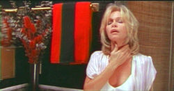 Bobbie Bresee (best known for the jaw-dropping Mausoleum -- where's that DVD?) stars as Lynn Roman, a fading silver screen star who believes her career might be revived by taking an experimental serum pioneered by a late scientist, Dr. Zeitman (Carradine). Unfortunately these nasty alien microbes infiltrating Lynn's body turn her into a towering, bug-like monster whenever her passions are aroused, causing her to go on a murderous rampage. Despite her newly youthful appearance, Lynn still can't get a job, leading her to increase her fix dosage and wipe out such innocent parties as her youthful assistant, Elaine (Pamela Gilbert), whose extended skinnydipping and subsequent gory demise form the film's highlight. Can this actress gone bad be stopped before Hollywood is wiped out entirely?