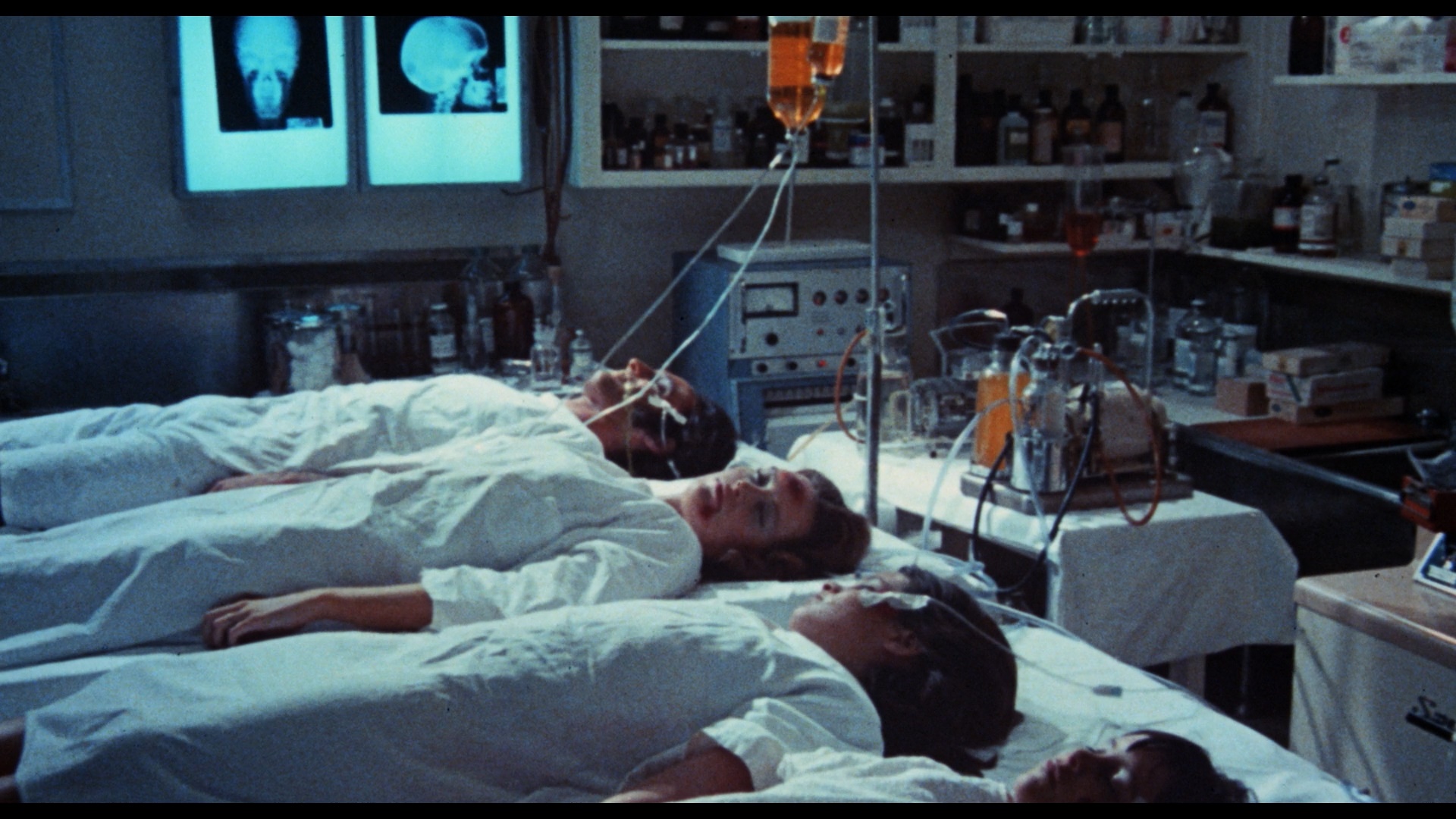 DTS-HD MA mono track. An audio interview with director Larry Spiegel (31m46s) via phone sheds a bit more light on his career in TV and film (including a lengthy bit about Remo Williams) and the path that led to him becoming one of the numerous helmers involved with this film, with the "T&A scenes" obviously having no connection to the original story. A "Compare and Contrast" (6m26s) reel points out some of the scenes in this film and Evils of the Night that seem to echo each other a little too closely to be coincidental, including a stupefying girl talk scene bound to bring on a case of deja vu.