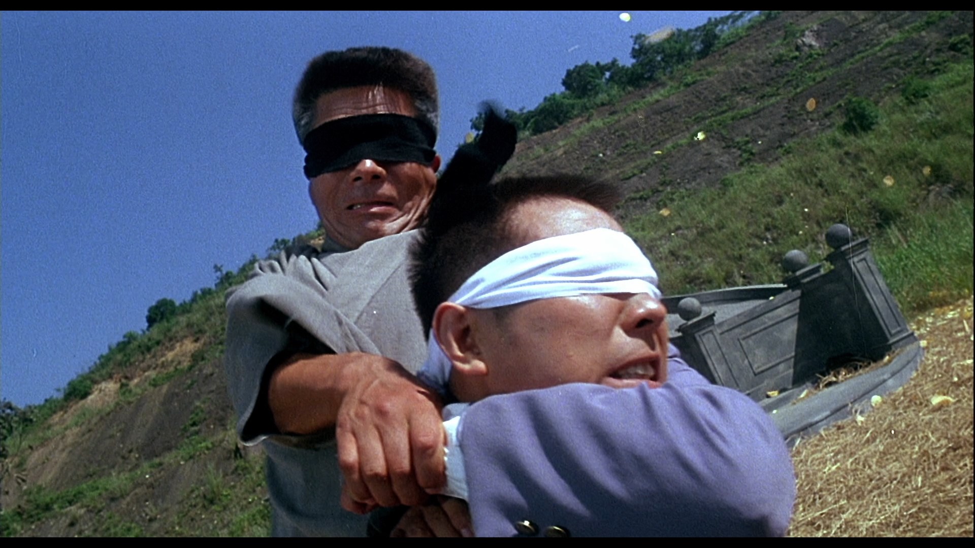 film shifted Dragon Dynasty for Blu-ray and DVD, again with a Logan commentary and numerous robust featurettes: "The Man Behind the Legend" (35m36s) with Chan covering his action films and particularly his work with Li; "Brother in Arms" (23m18s) with "kung fu impresario" Chin Siu-ho; "The Way of the Warrior" (29m41s) with Kurata Yasuaki; "The School of Hard Knocks" (26m32s), an entertaining and sometimes really wild peek at a class at the Kurata Action School for potential film fighters; an appraisal of the film (9m35s) with Mitchell and Ratner, which is sometimes insightful but also weirdly condescending to the Bruce Lee original; and a 5m8s reel of SD deleted scenes from the Taiwanese cut including a curious scene involving opium smoking at a brothel. The Ronix Flix reissue is a similar story here, porting over all the video extras and ditching the commentary while fixing some of the obvious flaws in the existing master (with the same adjusted framing). It also upgrades all of the audio options (Cantonese 2.0 mono, Mandarin 2.0 mono, and English 5.1) to DTS-HD MA with a significant gain in quality. This one is especially valuable for all those tracks since, as mentioned above, the soundtrack is radically different (and to these ears, really inferior) for the English dub. The familiar international credits are featured here complete with the Papyrus font that later gained pop culture infamy, and in a major selling point for the upgrade, the English subtitles here are correctly translated from the Cantonese track versus the seriously lacking dubtitles on the Dragon Dynasty, which drastically altered the meaning of numerous lines of dialogue. FIST OF LEGEND
