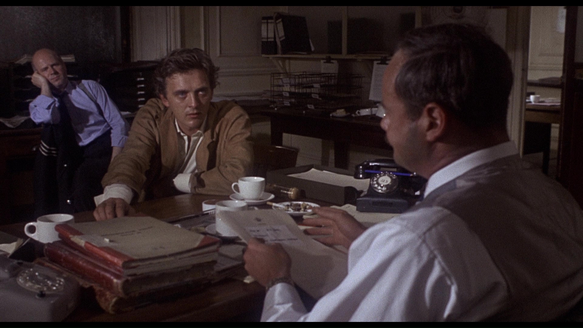 ranging from Goldfinger to multiple Planet of the Apes films, The Spy Who Came In from the Cold, and Murder on the Orient Express. Kipen does a good job of weaving together such recurring motifs as a love of animals and an atmosphere of paranoia while noting Kipen's love-hate relationship with typewriters. Up next is an interview with first assistant director William P. Cartlidge (9m57s), which is almost worth the disc by itself as he gets very candid about Sarafian's love for the bottle and odd shooting habits as well as the "scatterbrained" womanizer Hemmings, who didn't read the full script until a week into shooting. The theatrical trailer and three minutes of radio spots are also included, along with a batch of promotional stills and, in the insert booklet, a new liner notes essay by Johnny Mains, highlights from an unpublished interview with Harris, and a selection of reviews and press coverage from the film's original theatrical release.