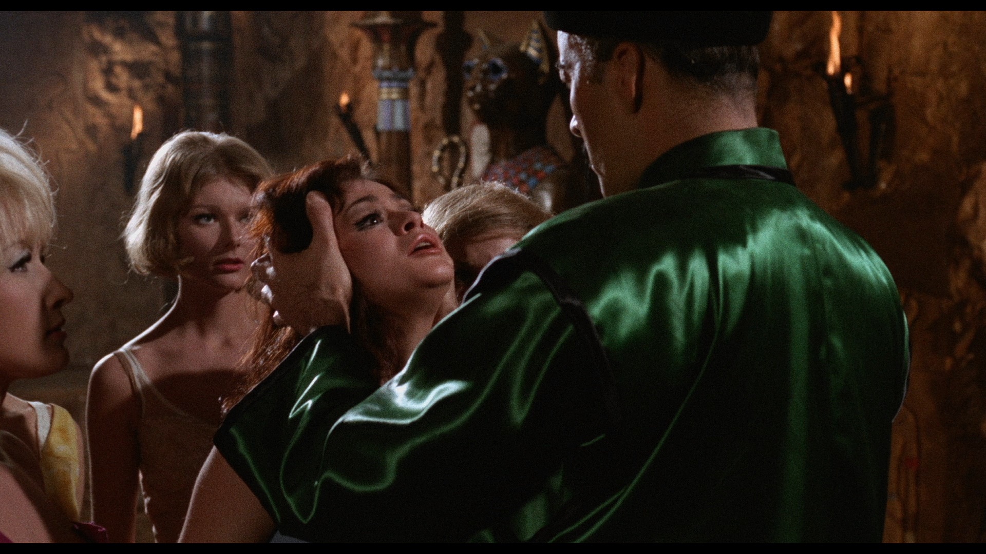 As the title indicates, this one emphasizes glamour and kink in keeping with the times, even opening up with Fu Manchu delivering exposition while surrounded by shackled women, flickering torches, writhing snakes, and fatal hair cutting in his faux Egyptian lair. The German co-financing is still prominent here including a big role for Heinz Drache, known at the time for starring in homegrown thrillers like Coffin for Hong Kong and, of course, a handful of Krimi titles like the all-star jam Der Hexer. Overall it's essentially an entertaining variation on the prior film and a typical example of the series style, at least for the initial three films before things veered off in a far more peculiar direction.