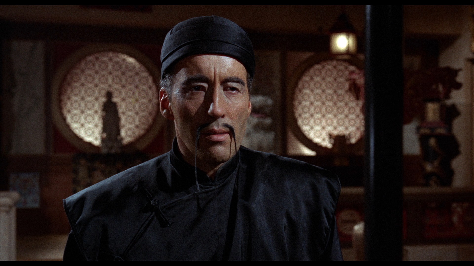 By the time The Face of Fu Manchuhe'd become a superstar in the horror community The Face of Fu Manchuwith his legendary roles for Hammer Films, Christopher Lee was still busy appearing in a variety of European co-productions that showed up off affinity for playing villains and heroes alike with great skill. He ended up getting one of his juiciest assignments from busy producer Harry Alan Towers (who wrote most of his own scripts under the name Peter Welbeck) with a splashy, full-color cinematic revival of Fu Manchu, the nefarious supervillain who featured in a large number of pulpy adventure novels by Sax Rohmer and most famously filmed earlier with Boris Karloff in The Mask of Fu Manchu. Even in the 1930s, the character had been the object of protests from the Asian community for its indulgence in "yellow peril" stereotypes that made it the violent flipside of the popular Charlie Chan mysteries. Nevertheless, the Rohmer formula proved to be highly influential over the years and had an undeniable influence on Ian Fleming, whose Dr. No in particular has Fu Manchu written all over it. For various reasons involving theatrical distributors and subsequent rights holders, it's been difficult to gather all five of Lee's films in the same place -- but the impossible has been achieved with the 2020 Blu-ray set from Indicator, The Fu Manchu Cycle, 1965-1969, which presents all the films in their finest editions to date... by a long shot.