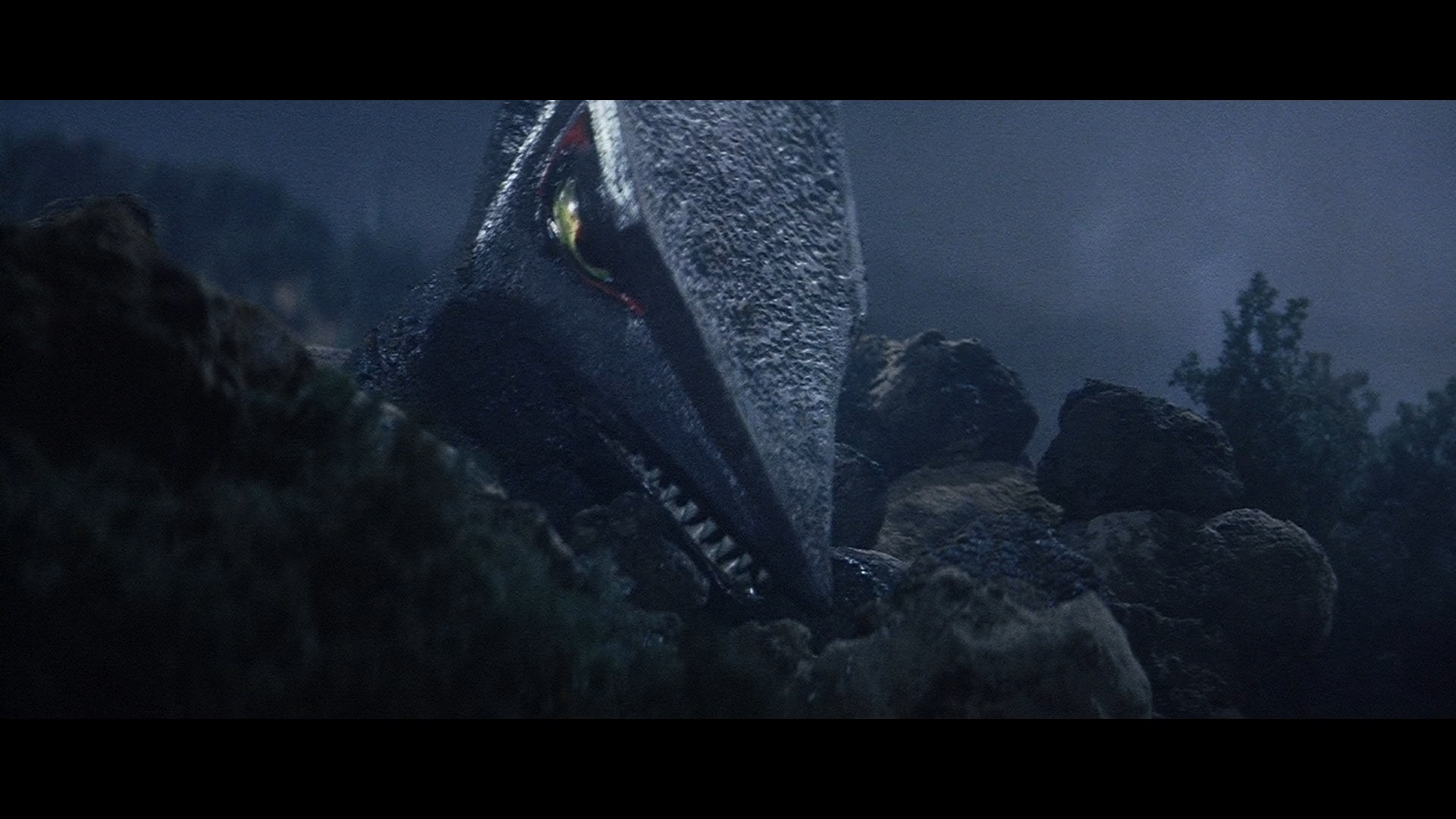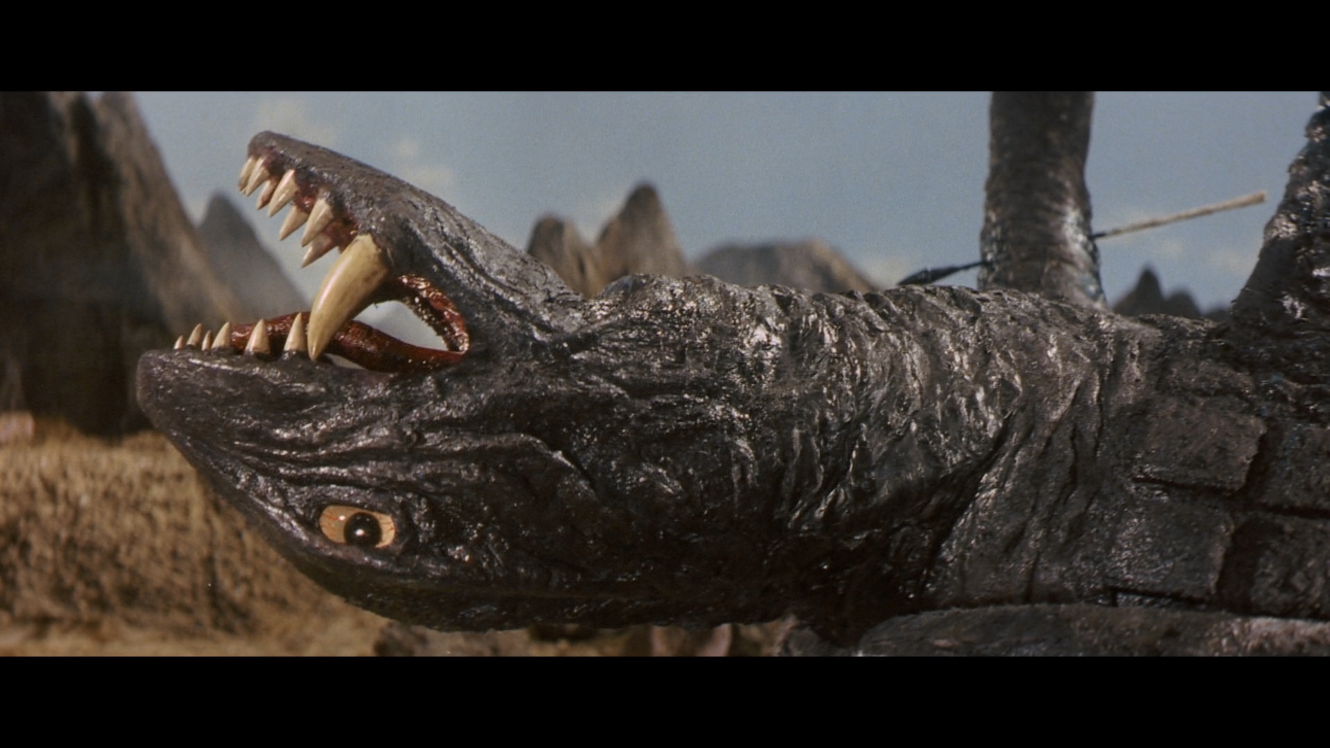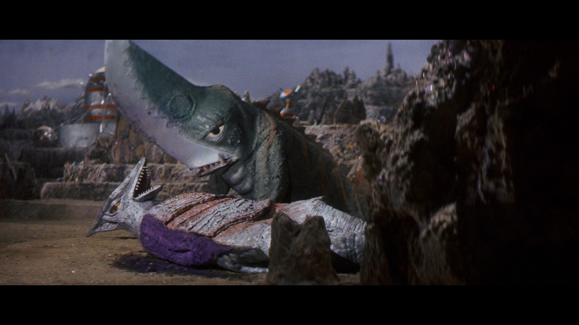 Daiei was on its last legs during the making of this film with an even lower budget than the prior entries, but it's still plenty entertaining with novel use made of an aquatic park and Gamera engaging in some rousing rumbles with his alien foe. The Arrow presentation is another winner featuring the Japanese and English mono tracks (the latter sounding cruddier than usual as it always has), with