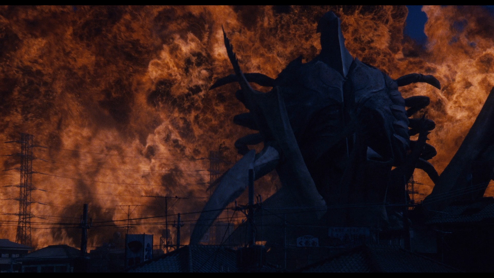 talking hands wondering what's going on; that mostly succeeds here, though of course the main attraction is the giant monster sequences which include a protracted, impressive climax that really knocked 'em dead on the big screen. Again the action is quite a bit more unsettling and violent than the classic films including a nasty first encounter that has the swarm tearing at our giant hero in a way that would've never flown on